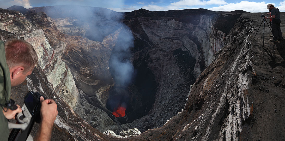 Arnold (left) and Thorsten photographing Marums lava lake |
