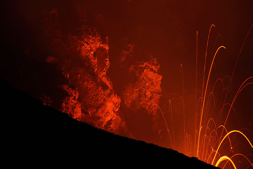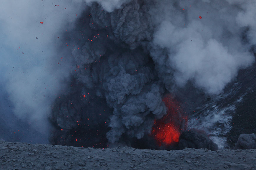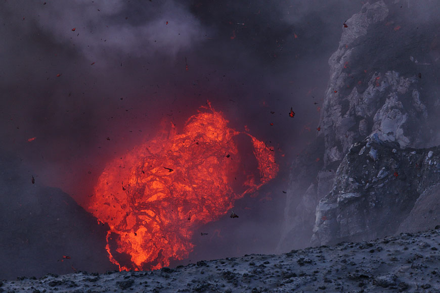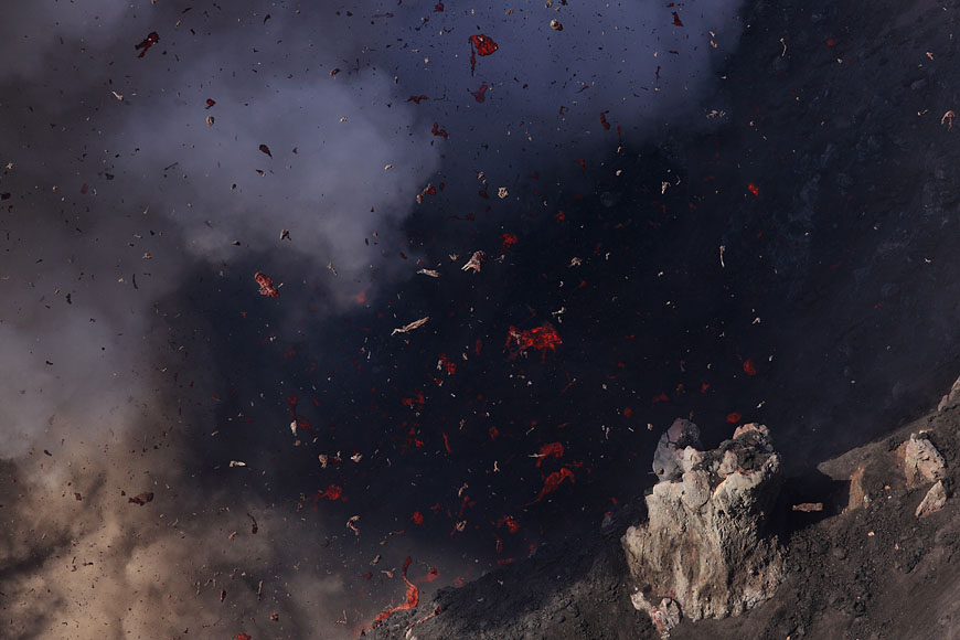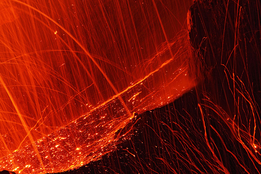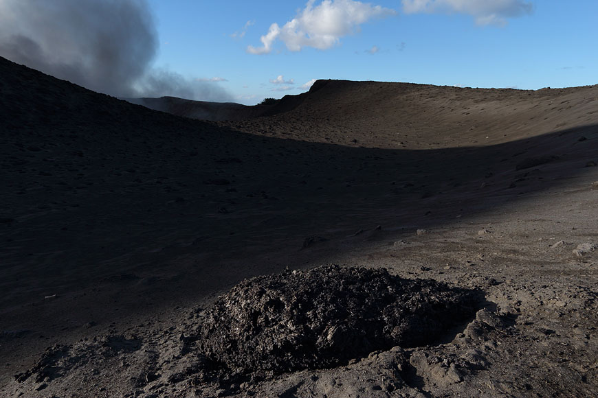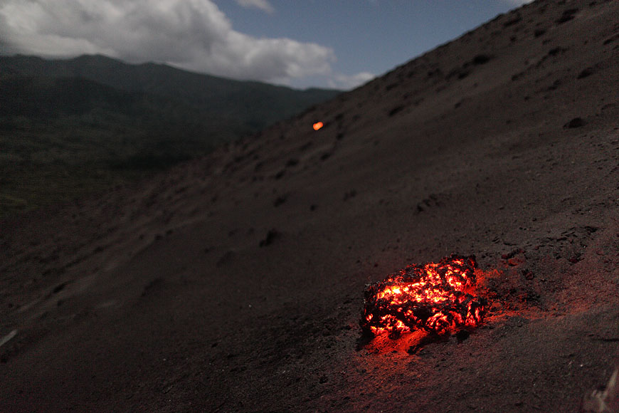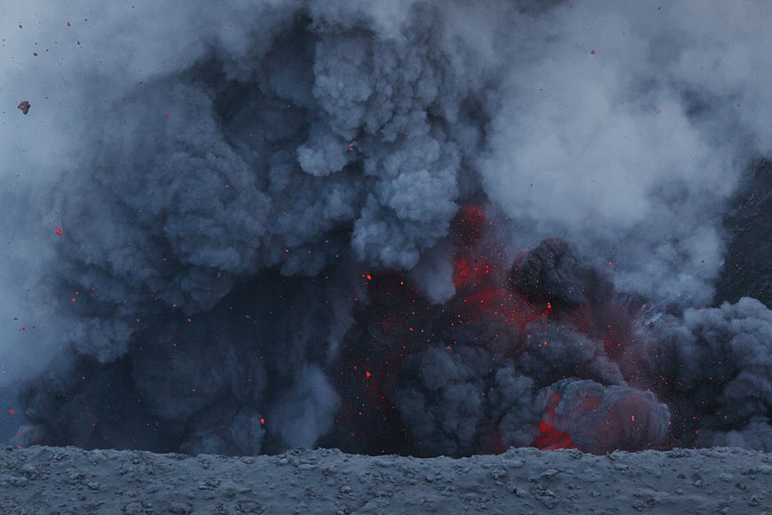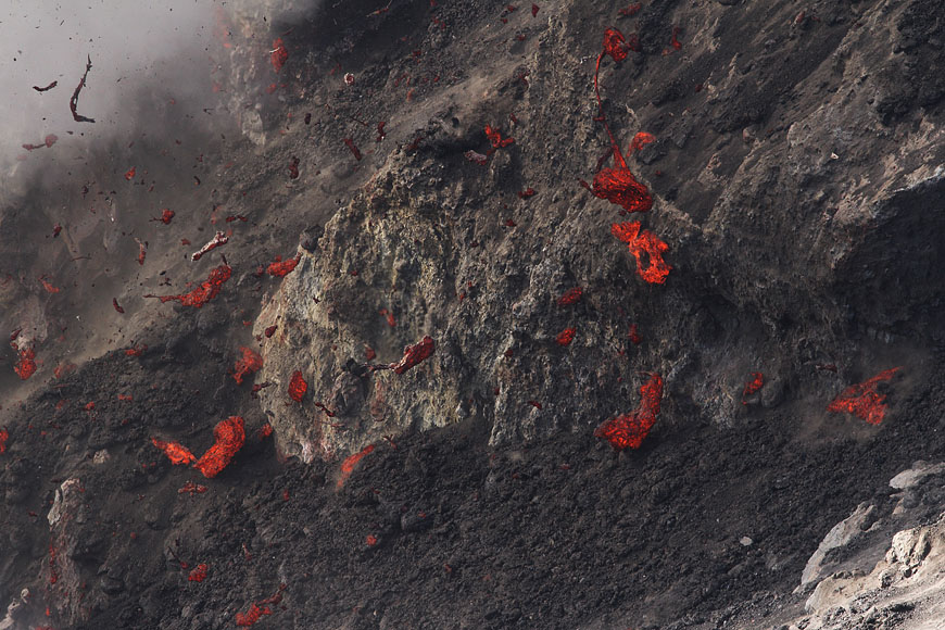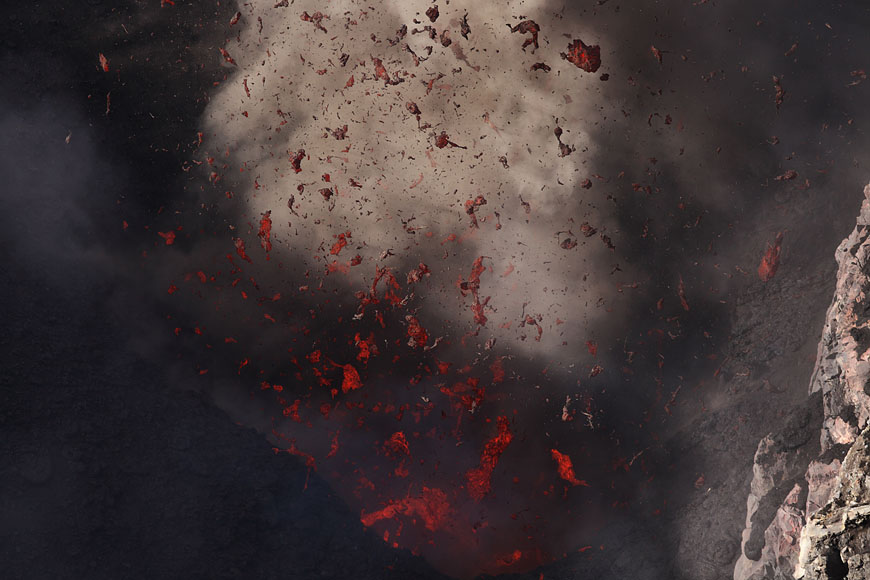 soon the lava bombs are flying over the photographer with sound like war bombing, hitting the outer flanks... |