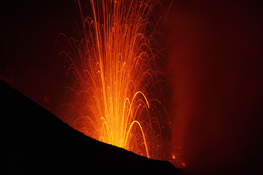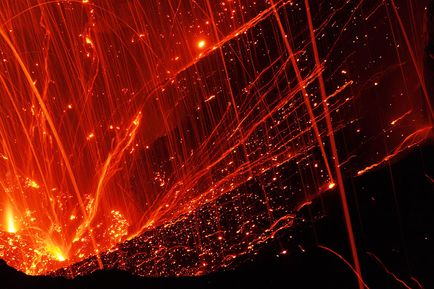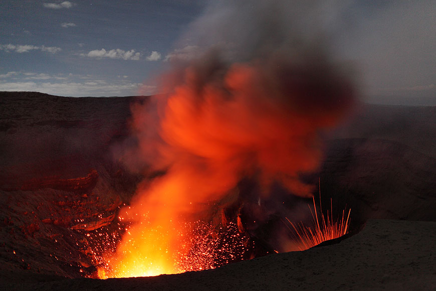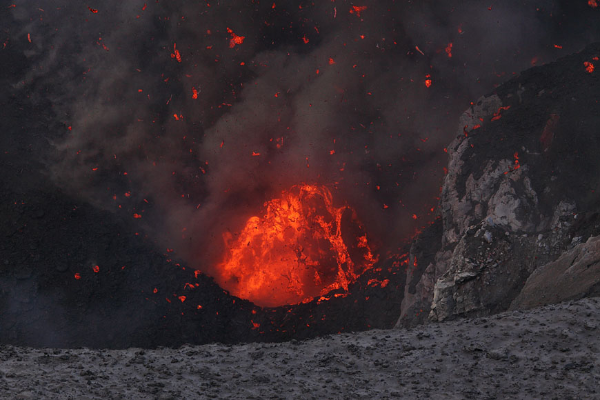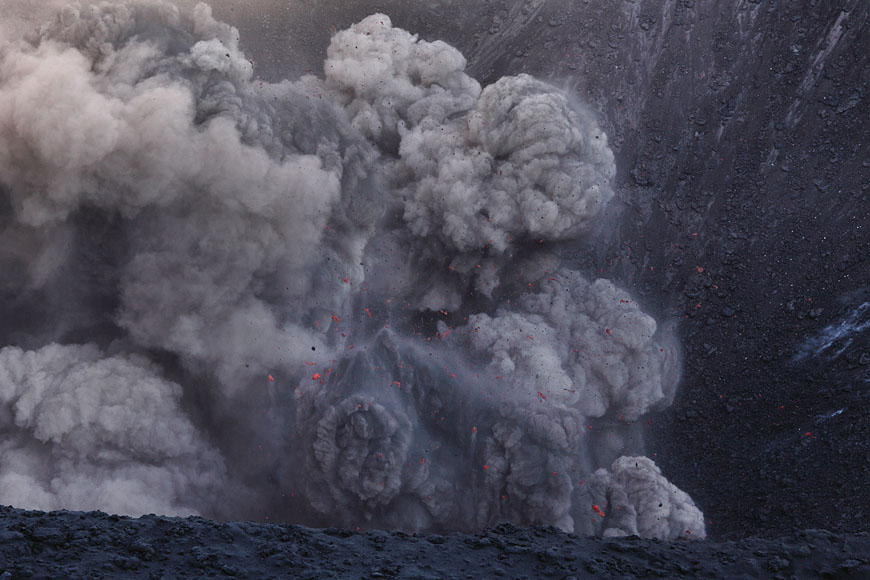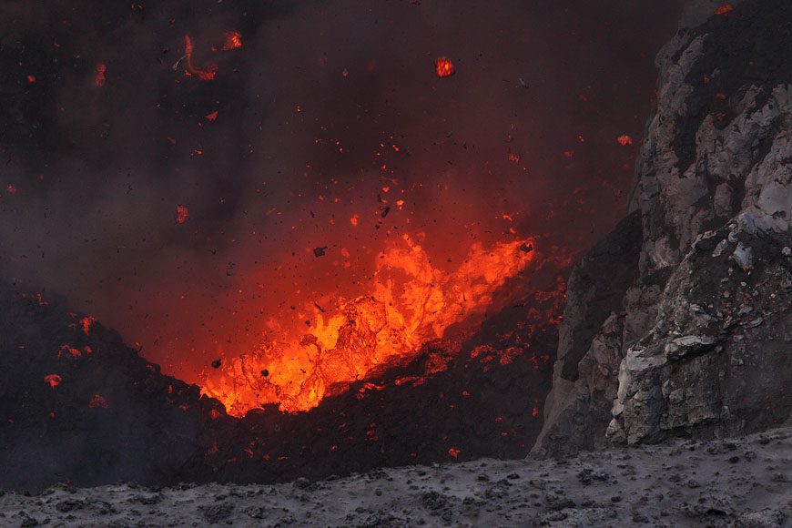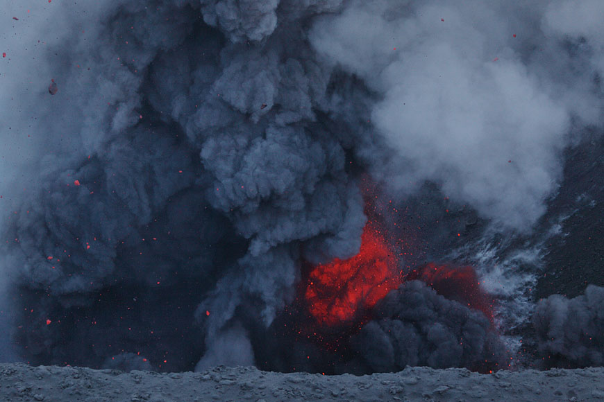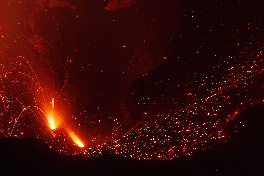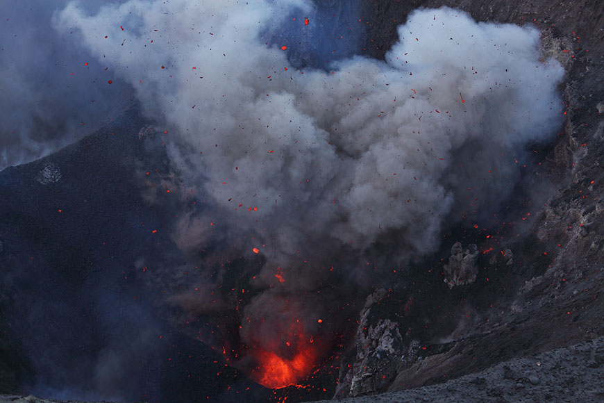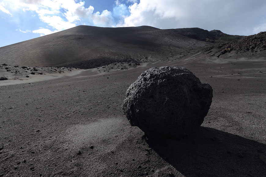 soon the lava bombs are flying over the photographer with sound like war bombing, hitting the outer flanks... |