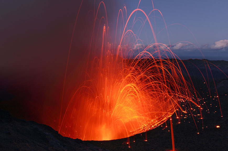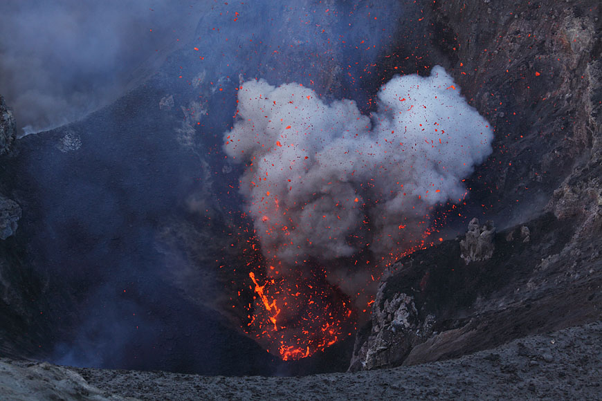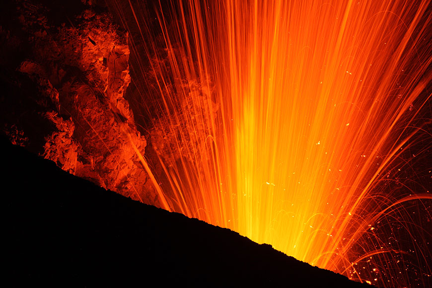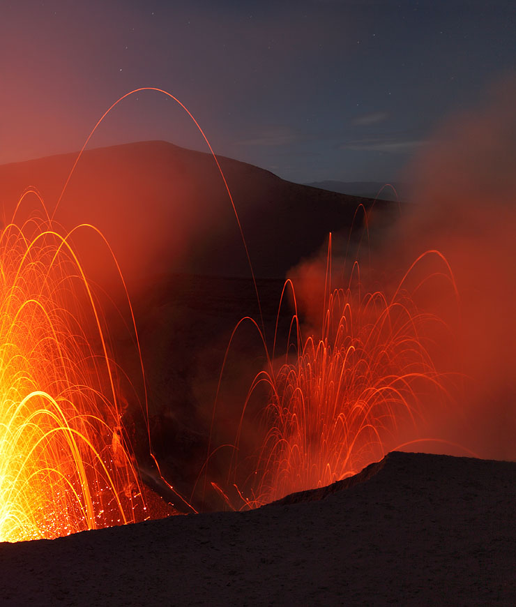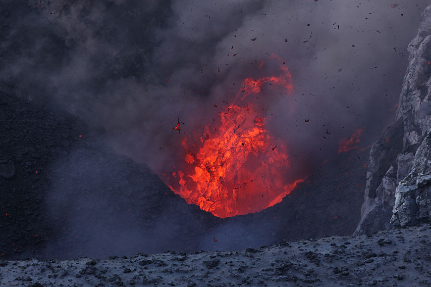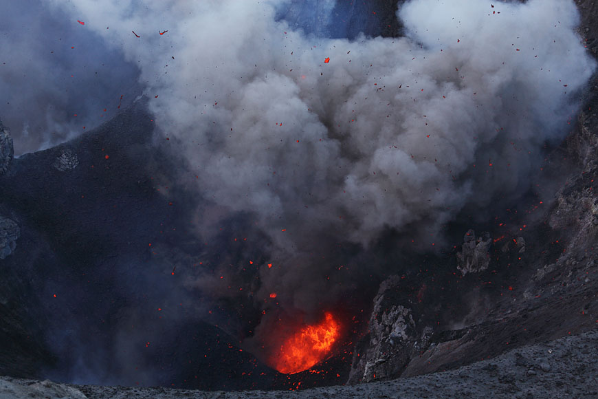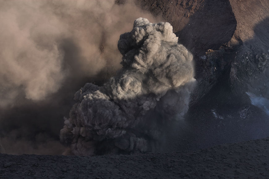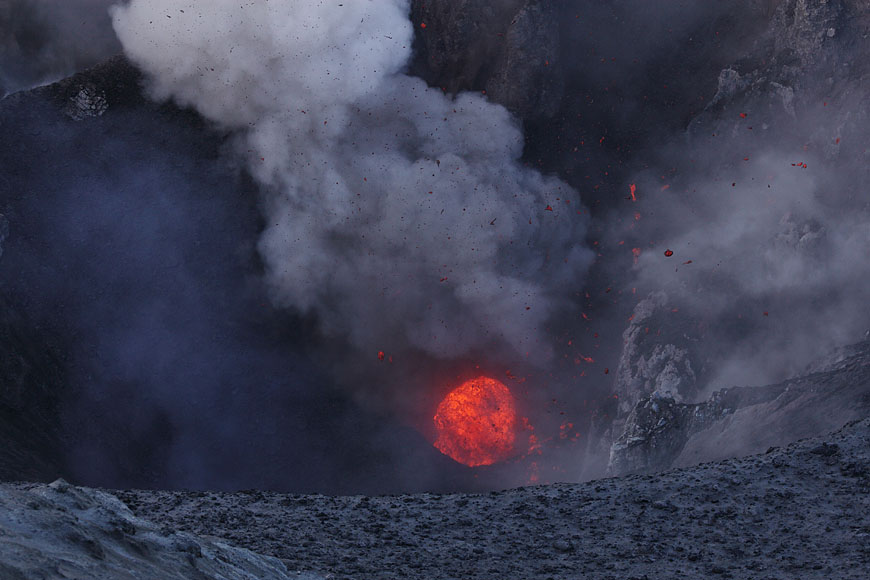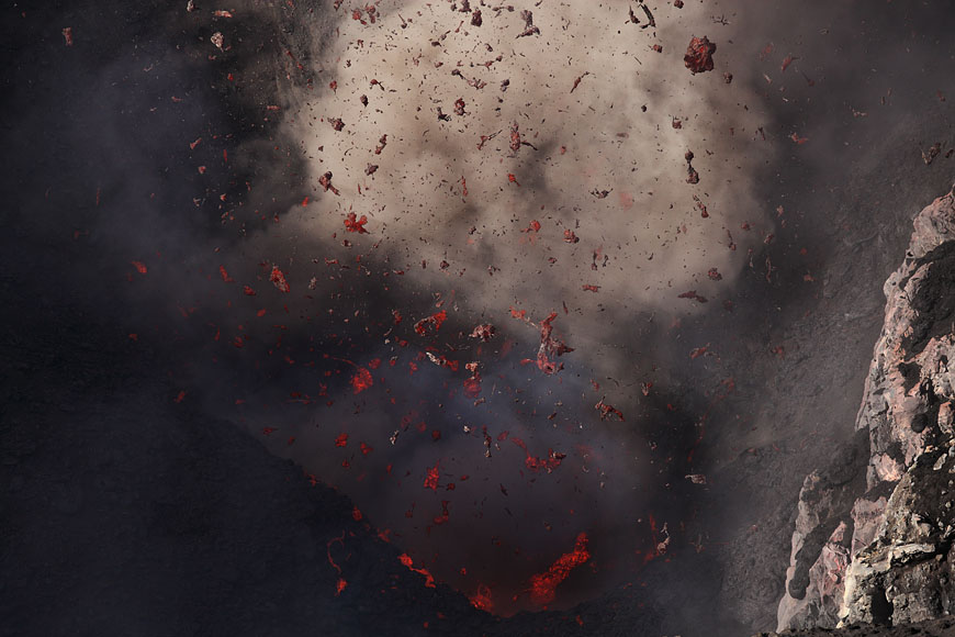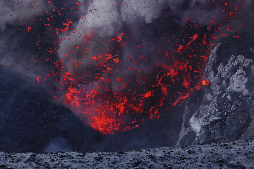 soon the lava bombs are flying over the photographer with sound like war bombing, hitting the outer flanks... |