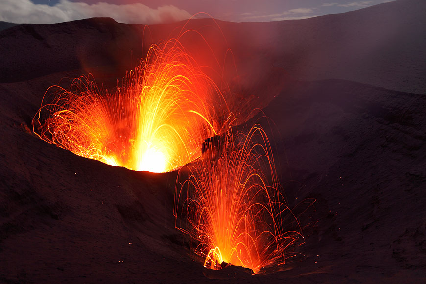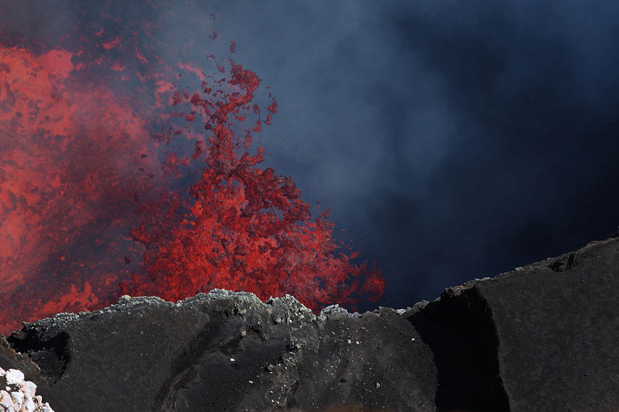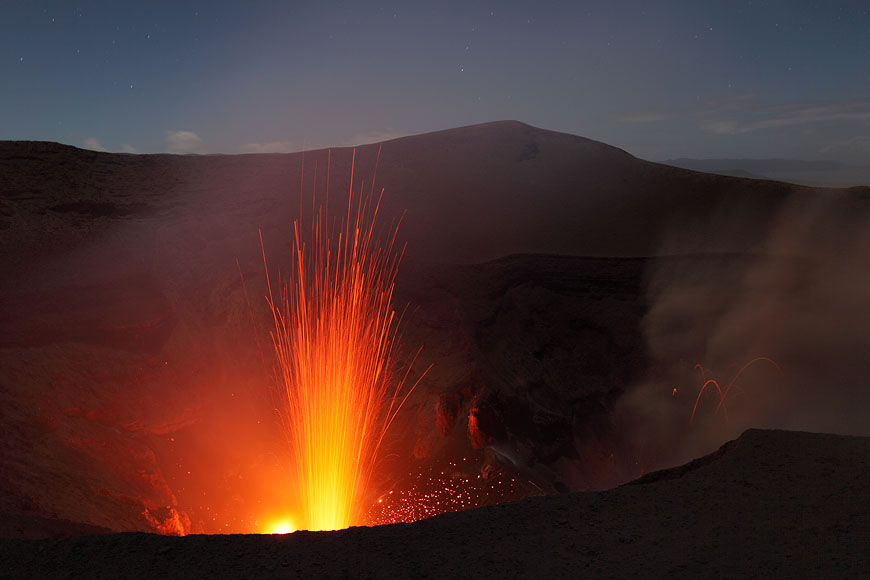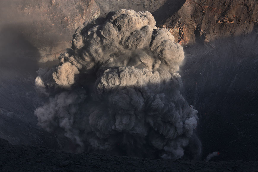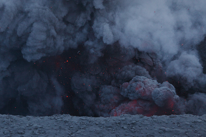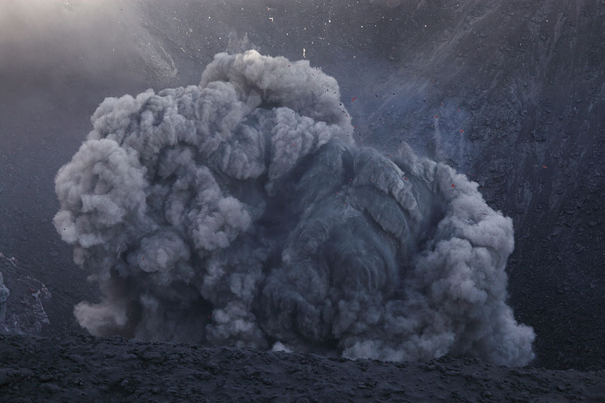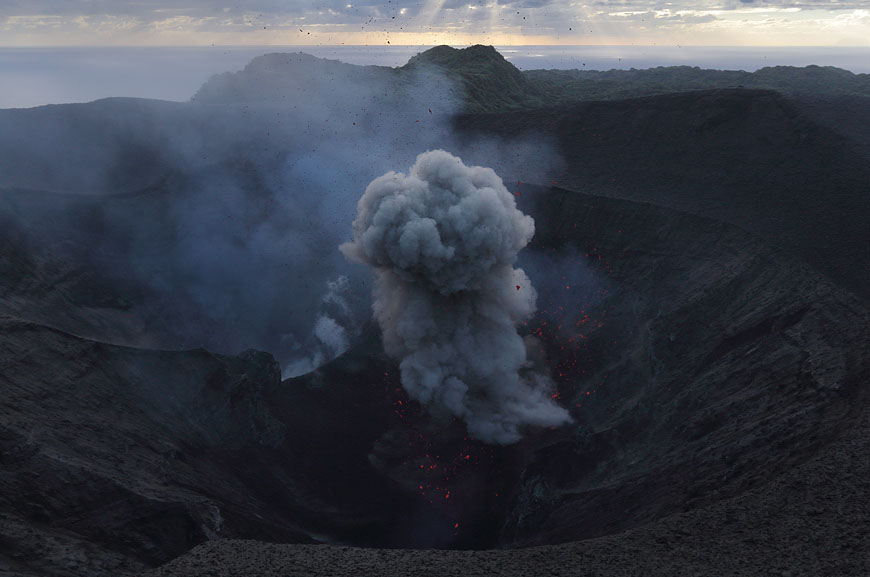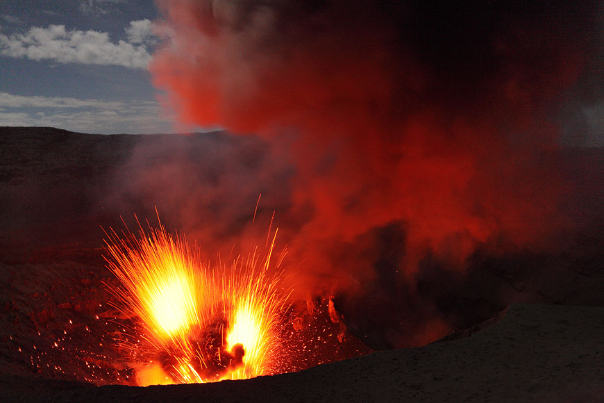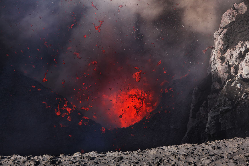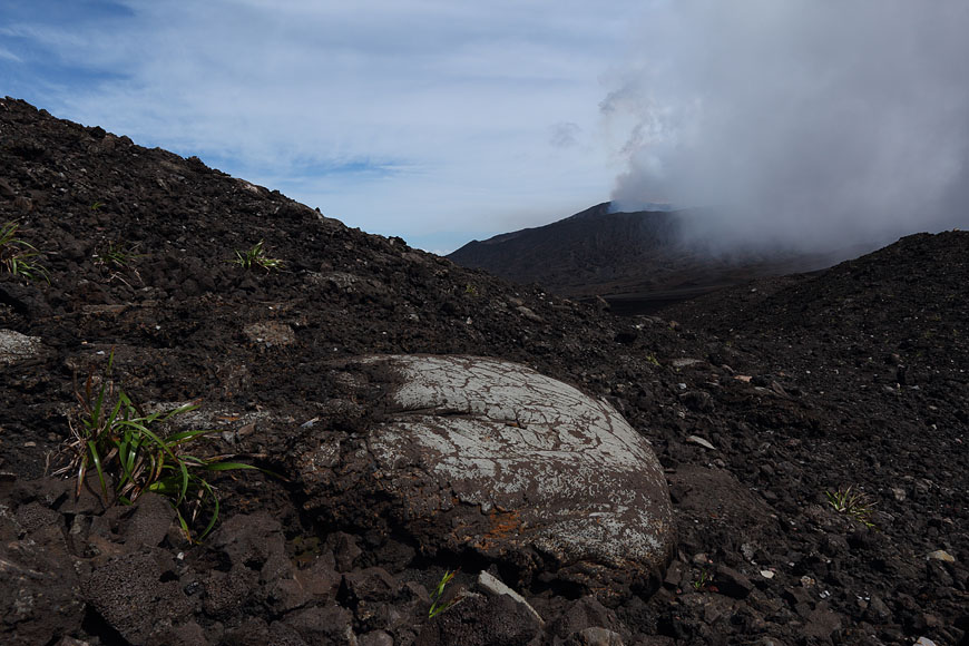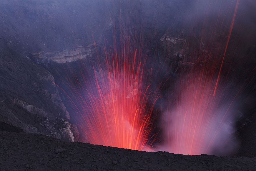 soon the lava bombs are flying over the photographer with sound like war bombing, hitting the outer flanks... |