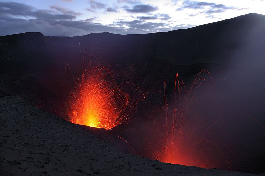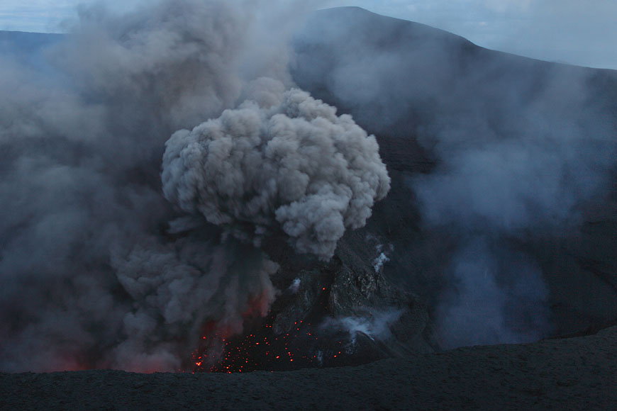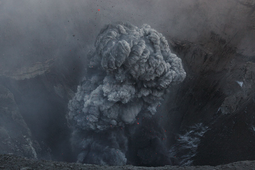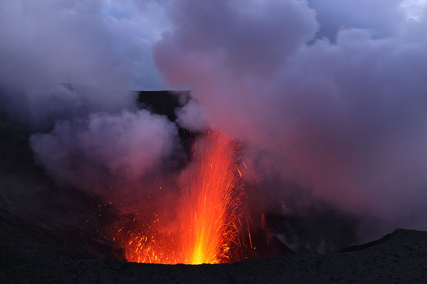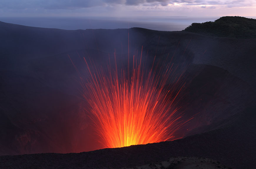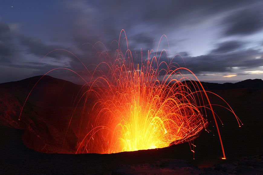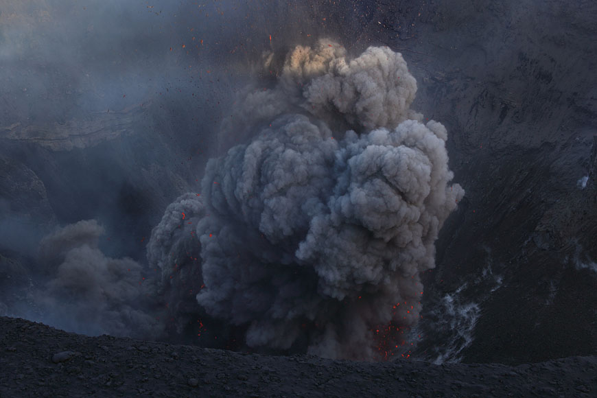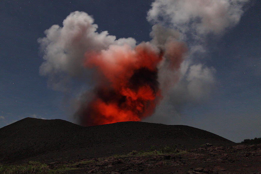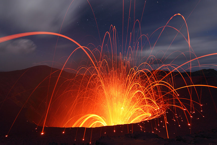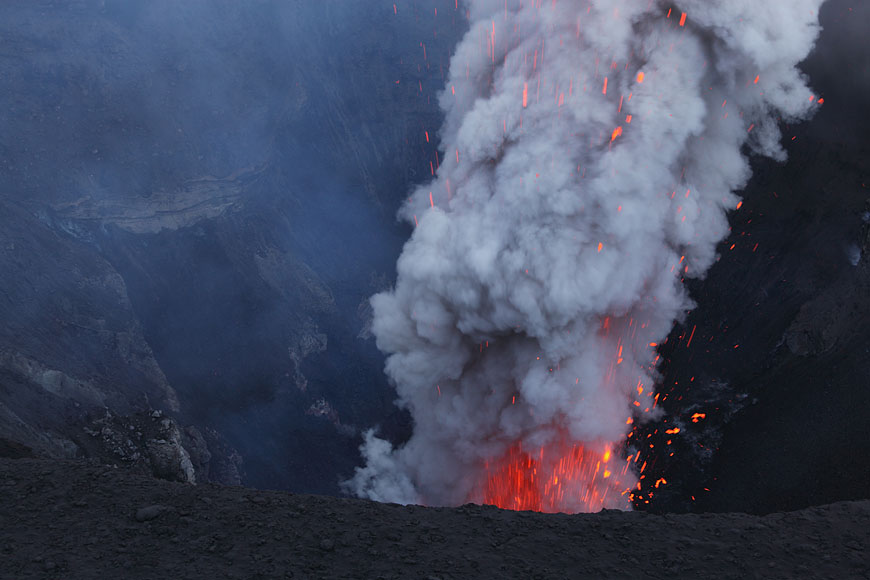 soon the lava bombs are flying over the photographer with sound like war bombing, hitting the outer flanks... |