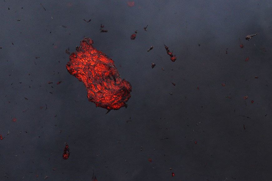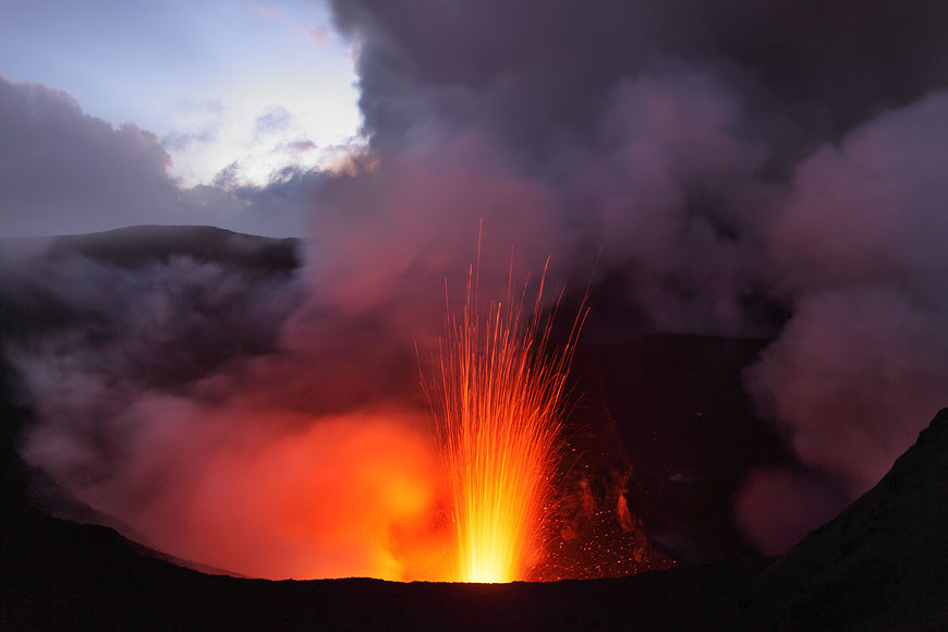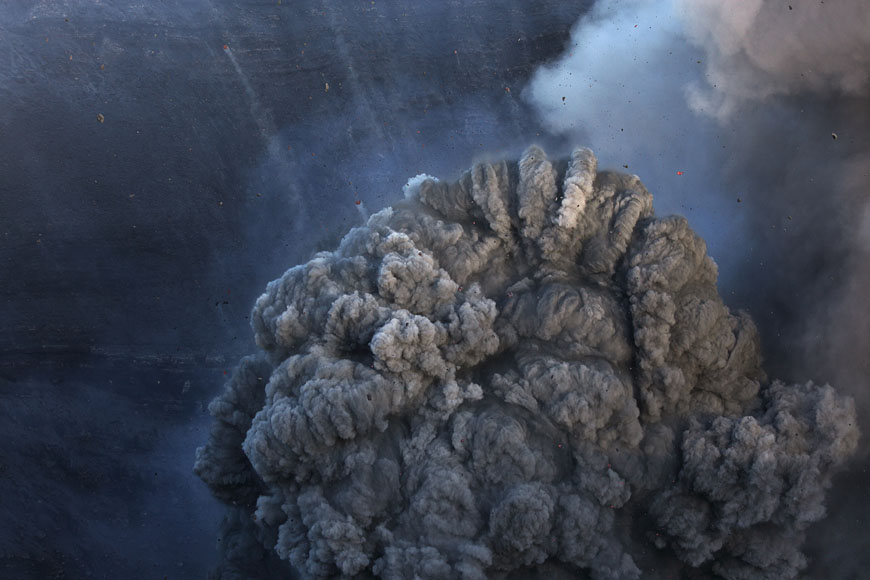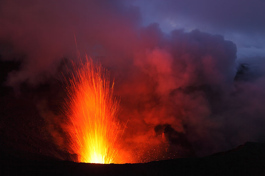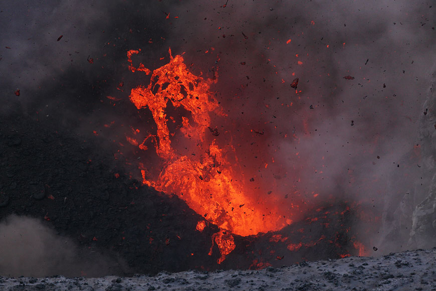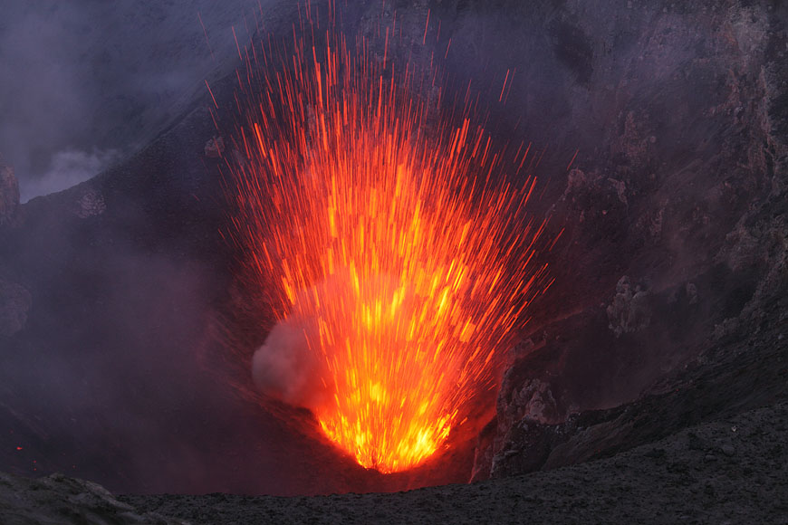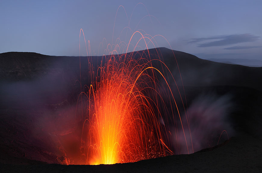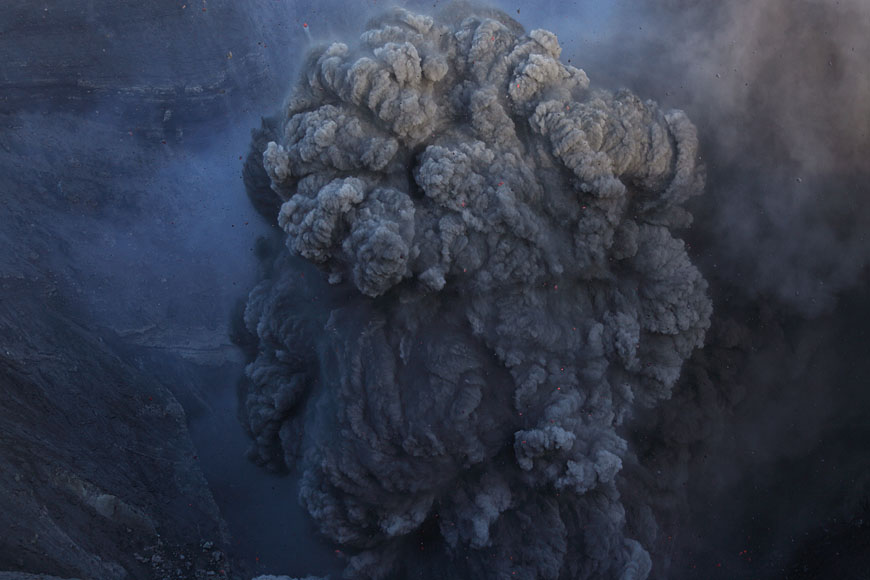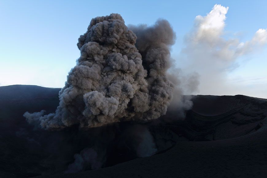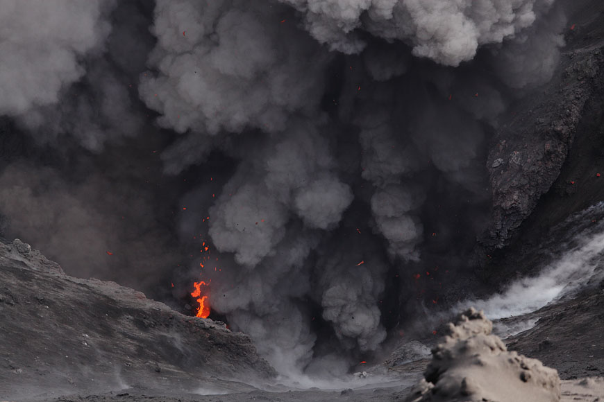 soon the lava bombs are flying over the photographer with sound like war bombing, hitting the outer flanks... |