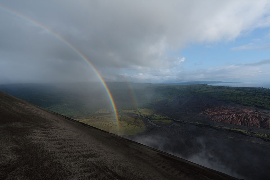 on the way back to our camp at Marum, volcanic gases giving surreal sunset colors |