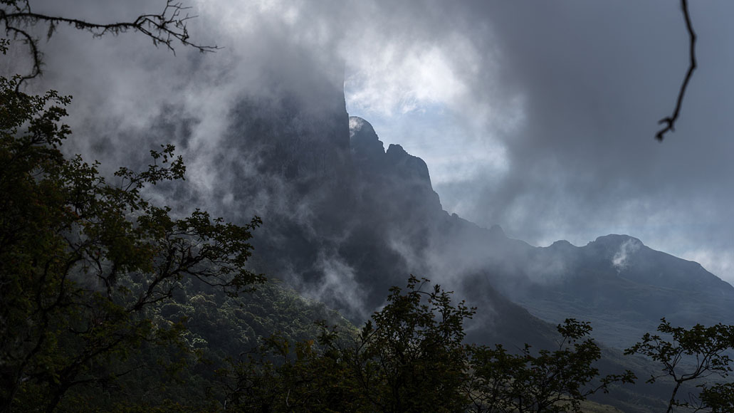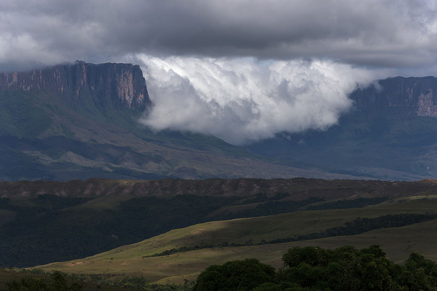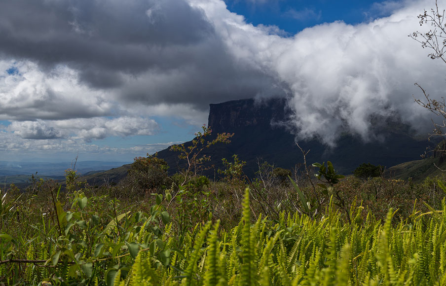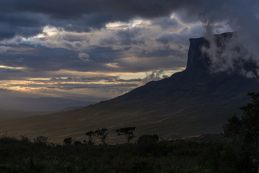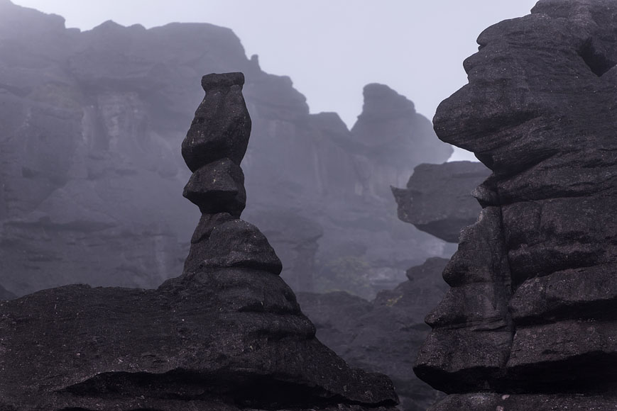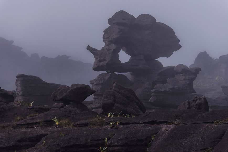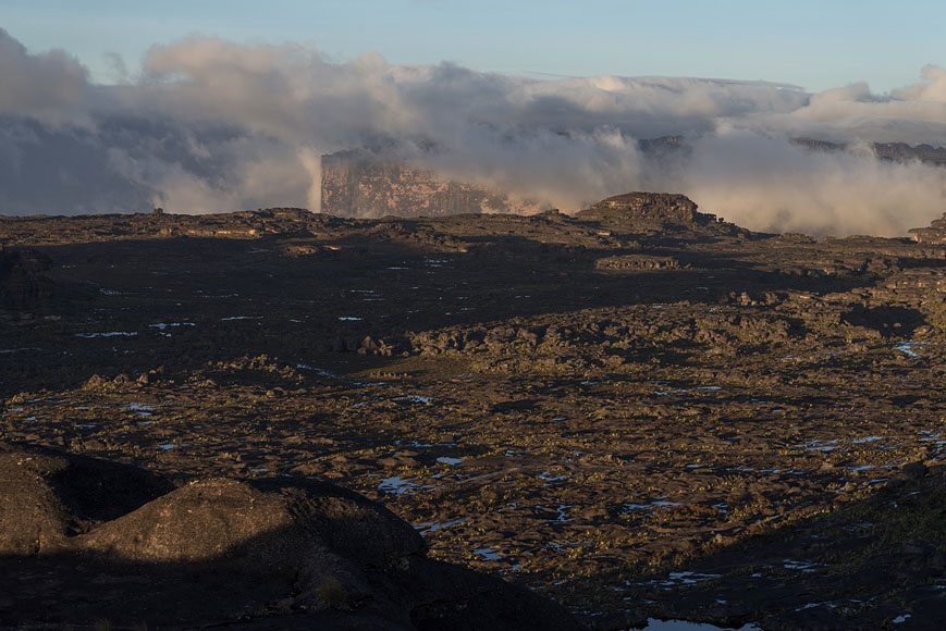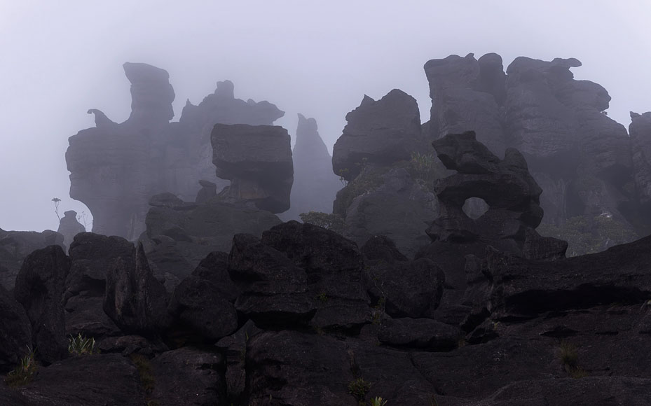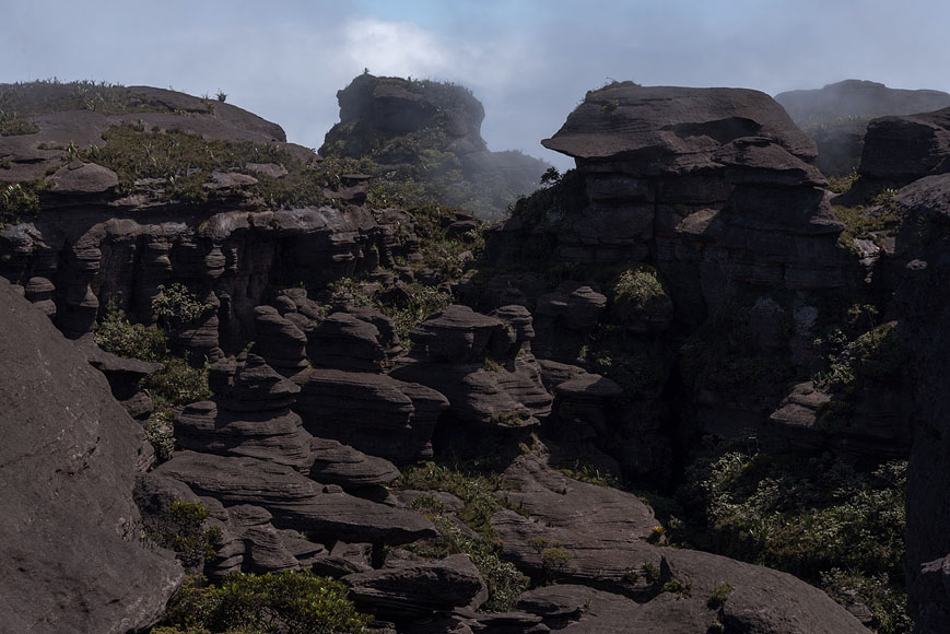 Roraima plateau under typical extreme climate - ever changing fog layers and sunpatches |
