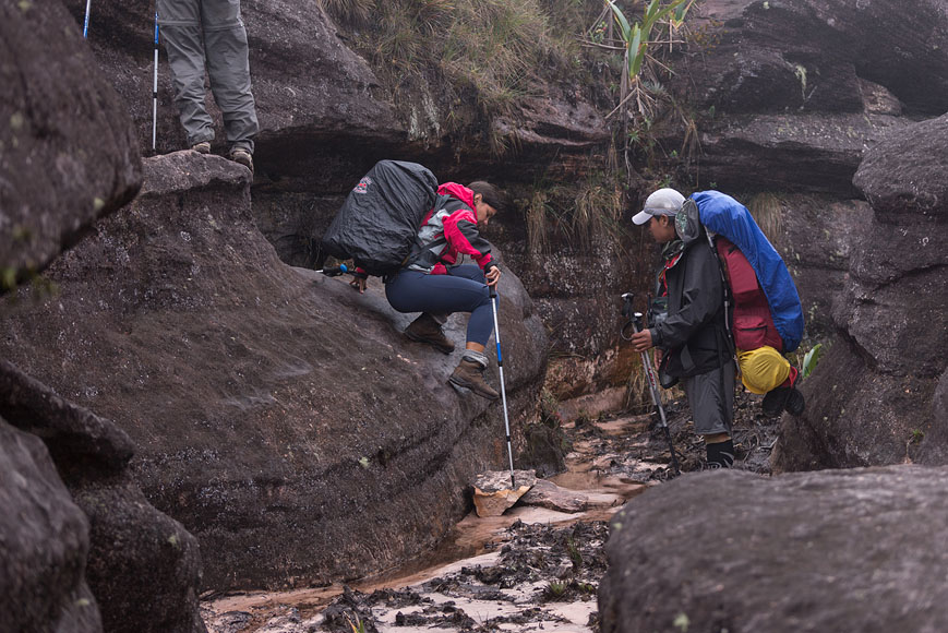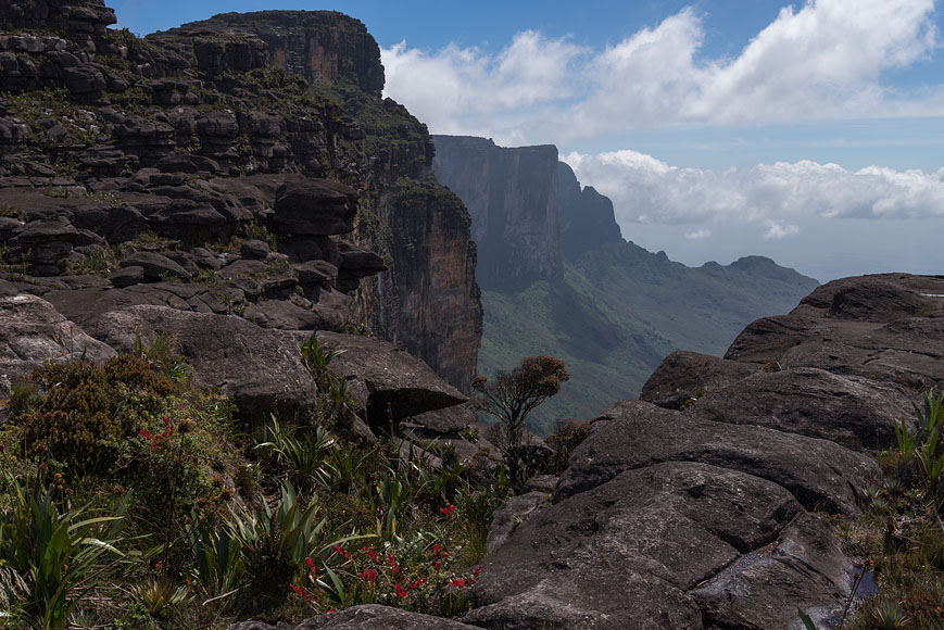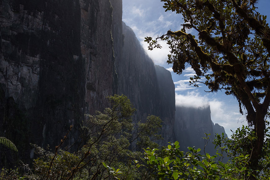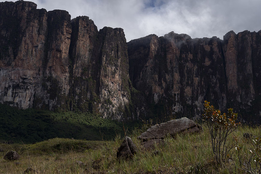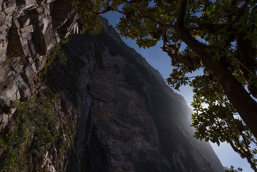 the only way to reach Roraimas top easily-a traverse cuts throug the cliff |