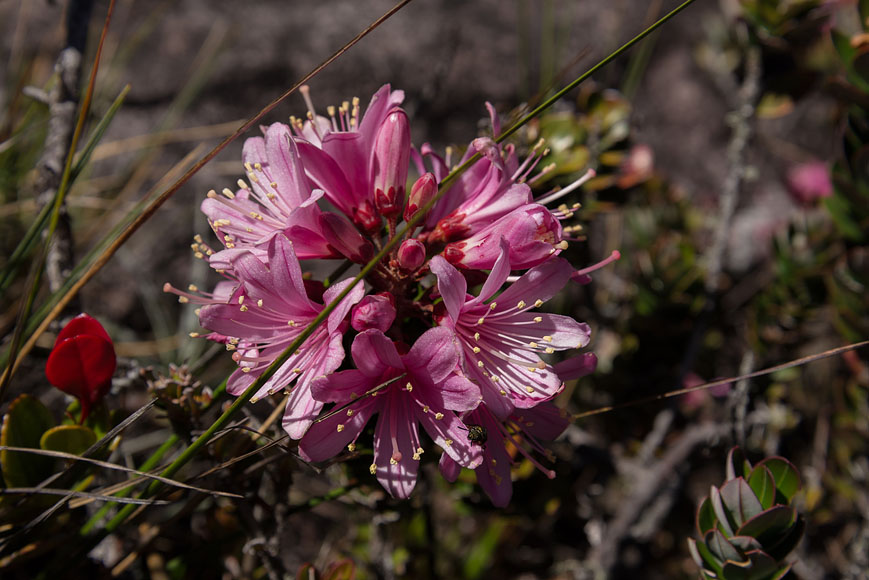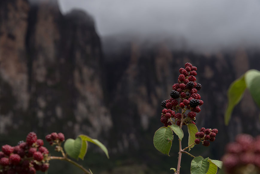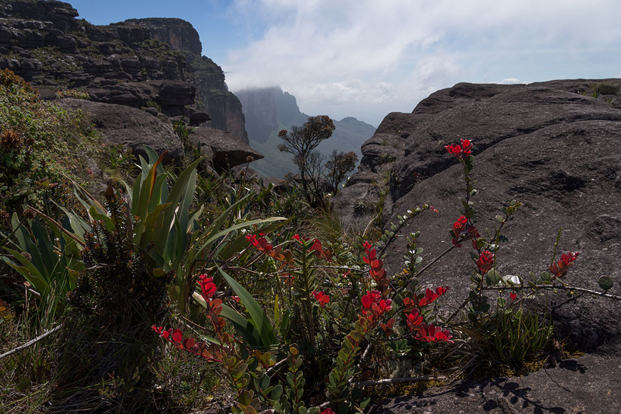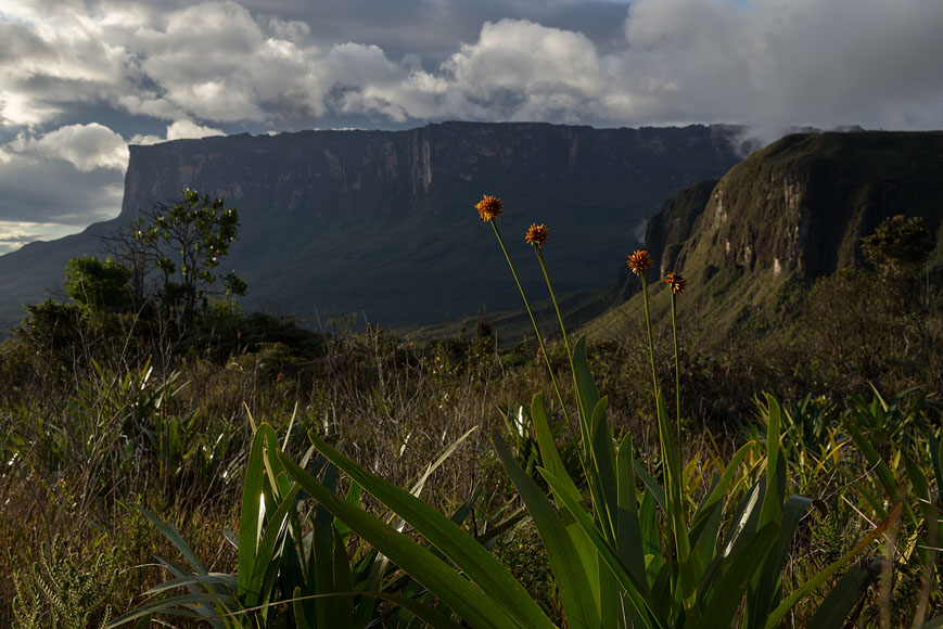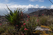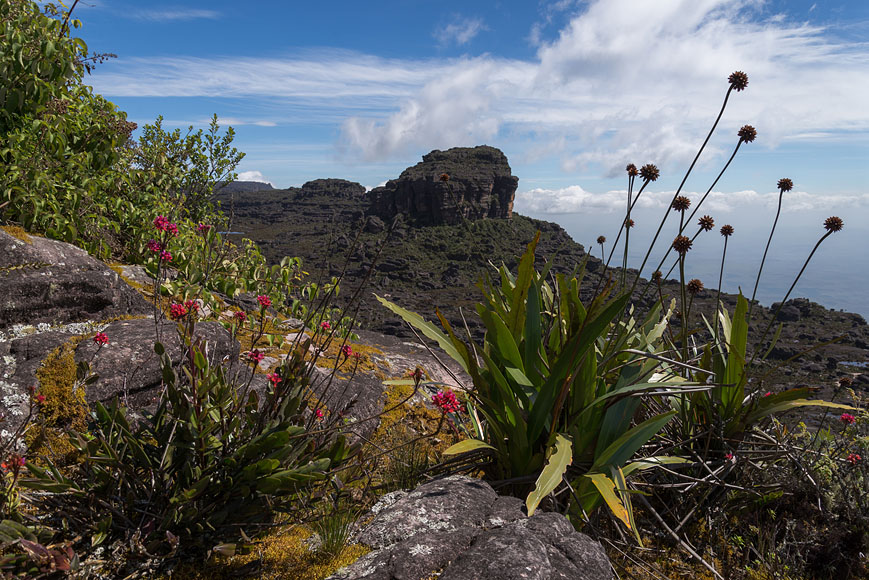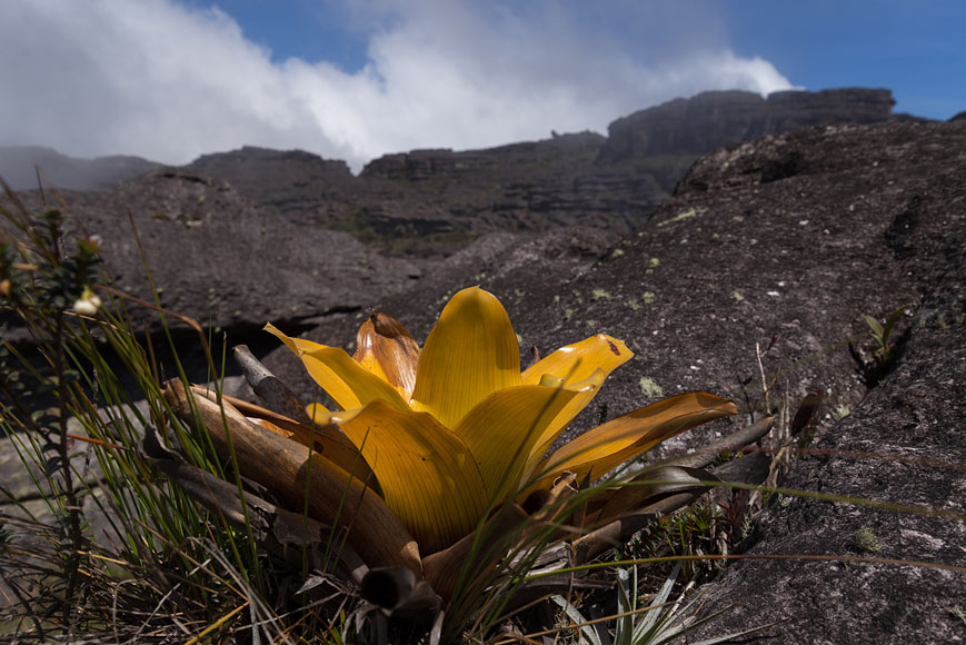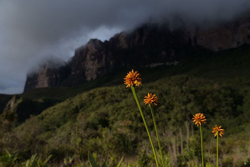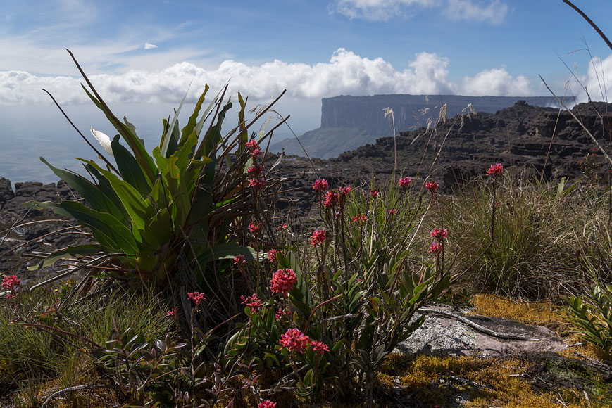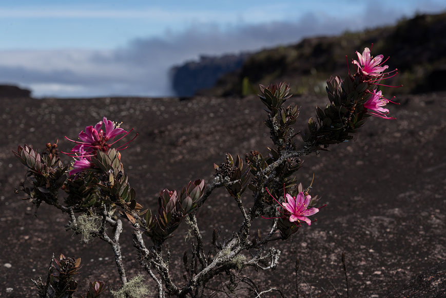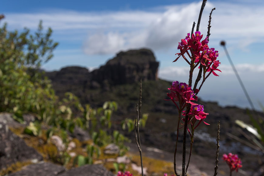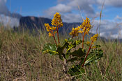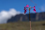 Stegolepis guianensis flower with Roraimas highest point behind |