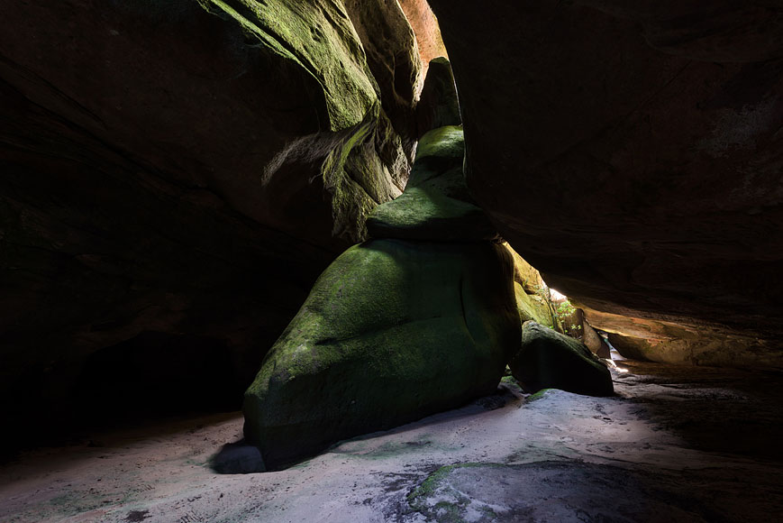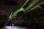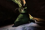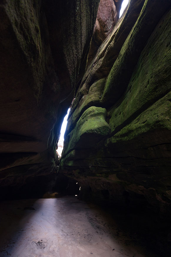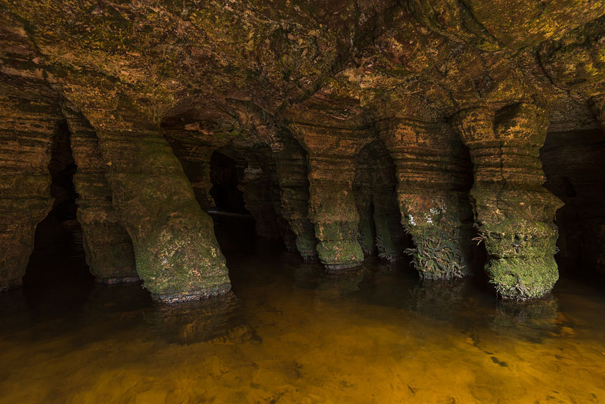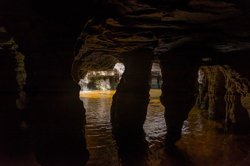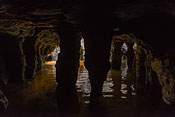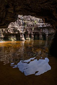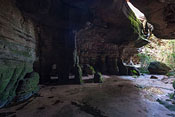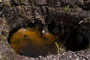 'The Pit' sinkhole from below with bizarre rock pillars |