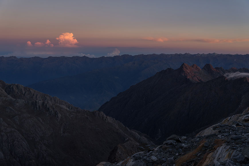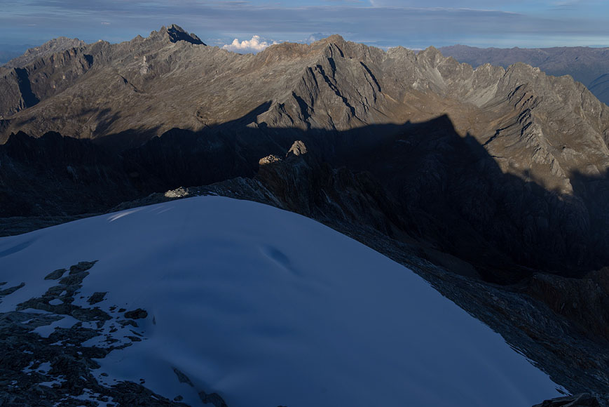 Pico Humboldt climb - view down to Laguna Verde at sunrise |
