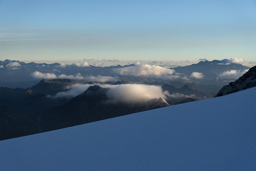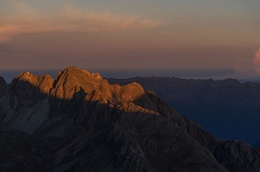 Pico Humboldt climb - view down to Coromoto valley at sunrise |