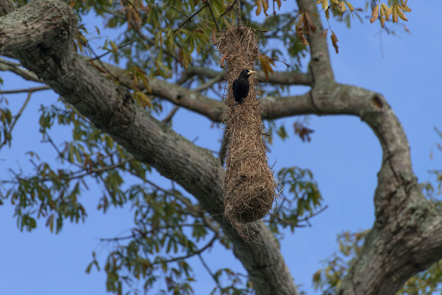 bird in front of its nest |