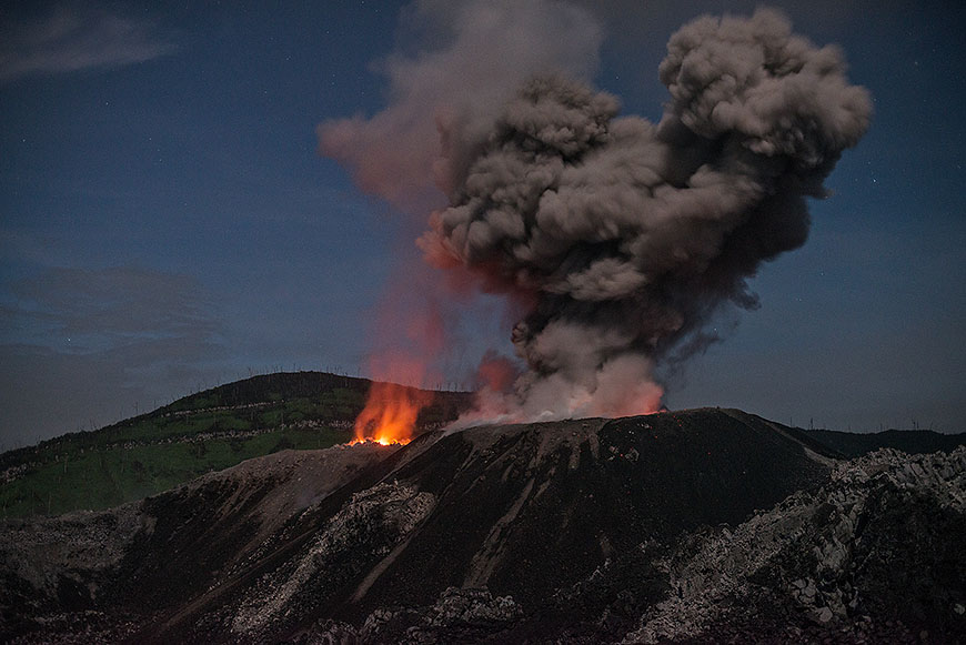 burning sulphur cascade with main vent faculae behind |