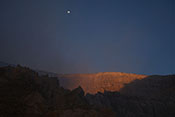 full moon above crater walls at sunset |