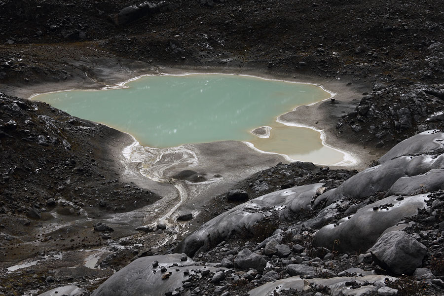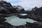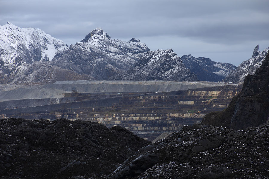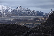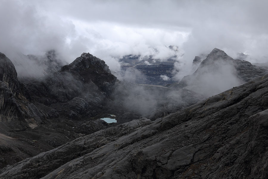 view down to lakes near basecamp, Grasberg Gold mine behind