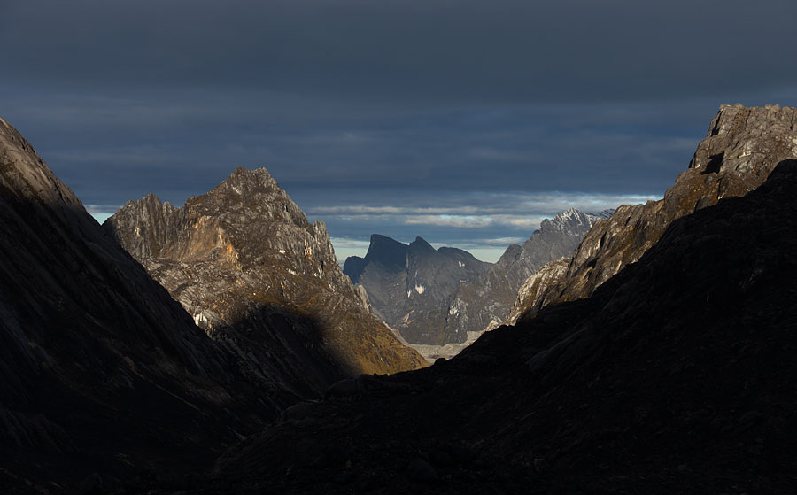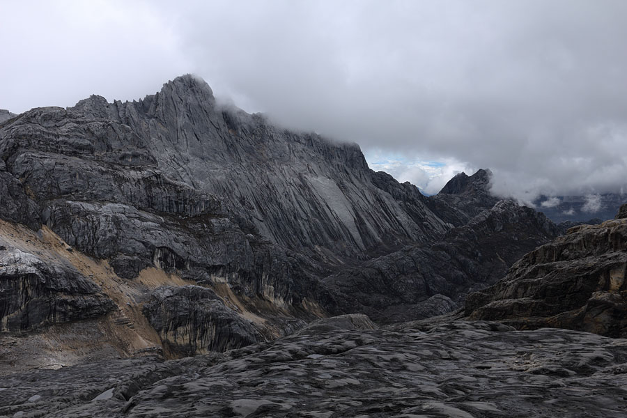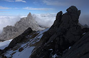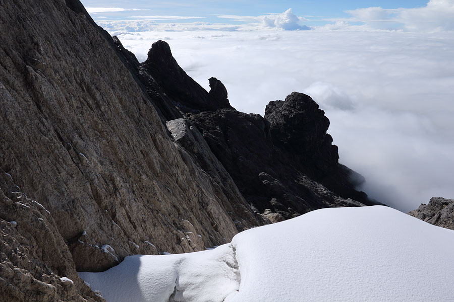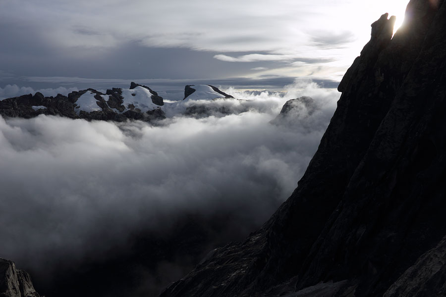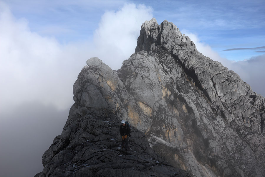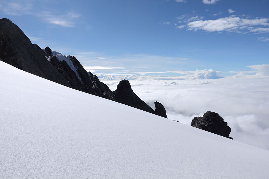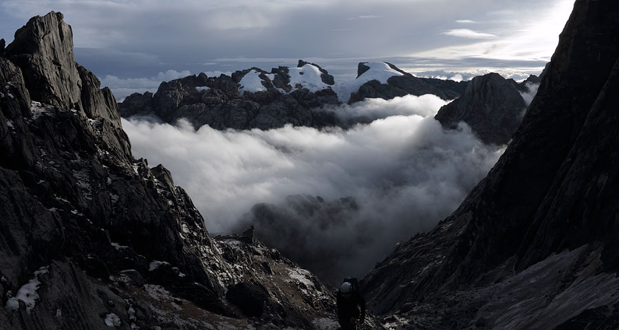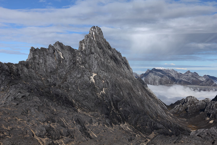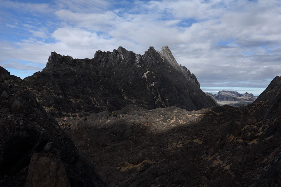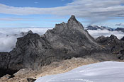 early morning 25.10. solo climb of Carstensz East, view back to yesterday climbed west ridge