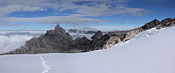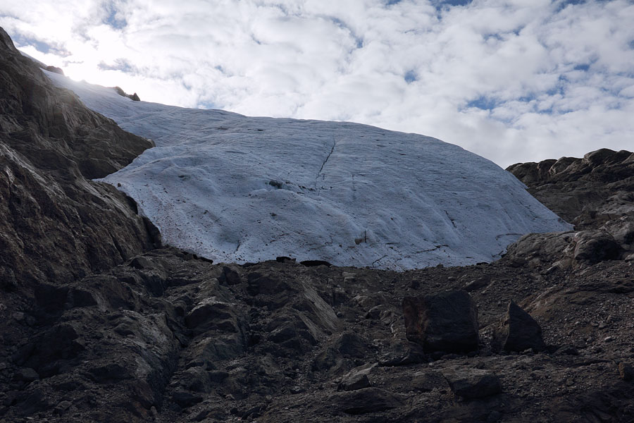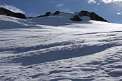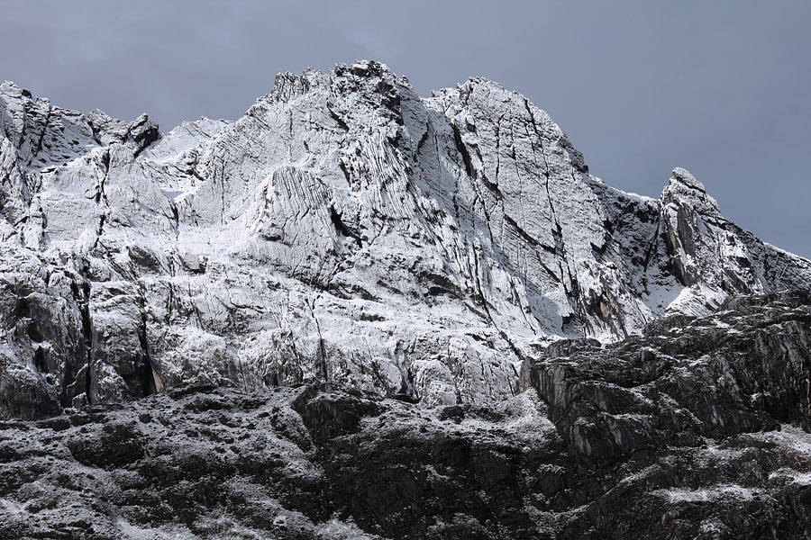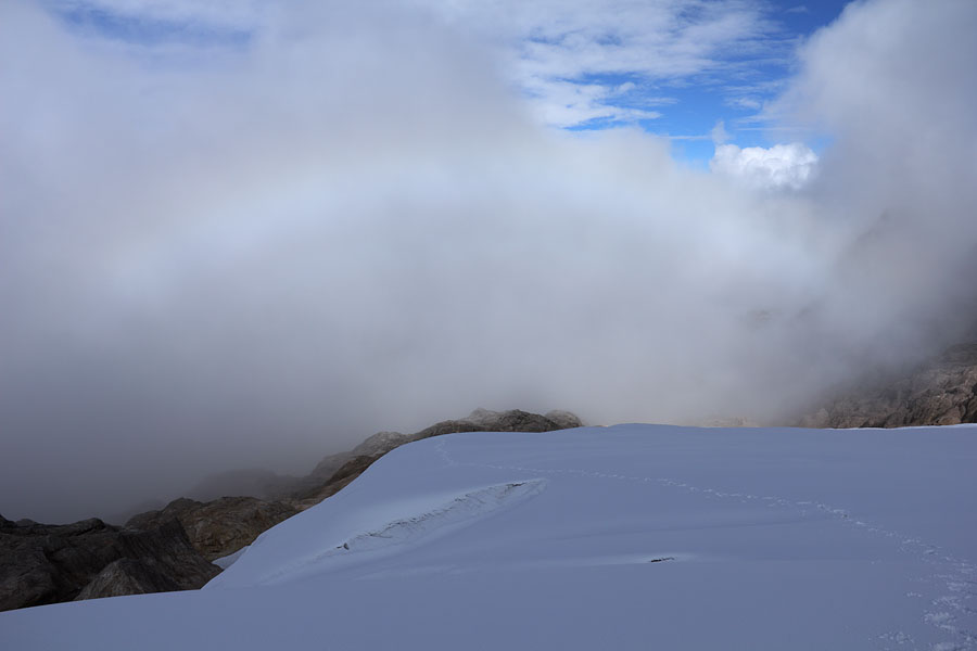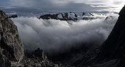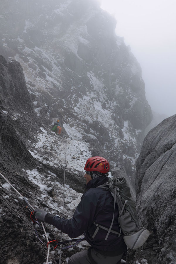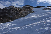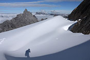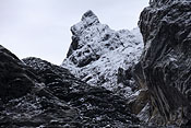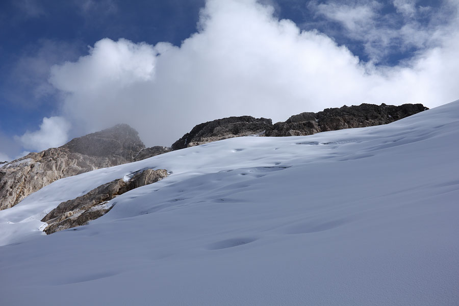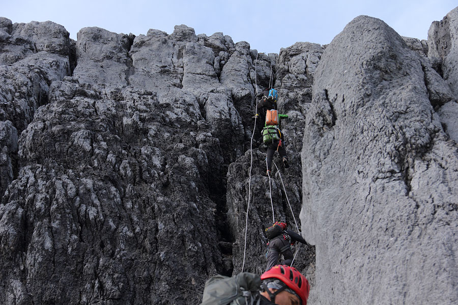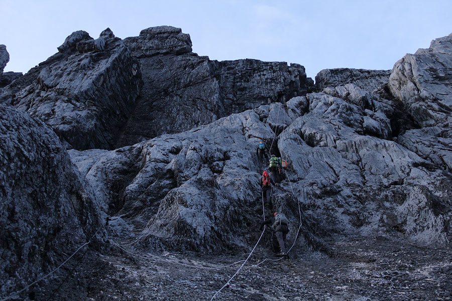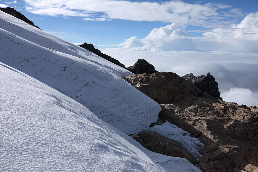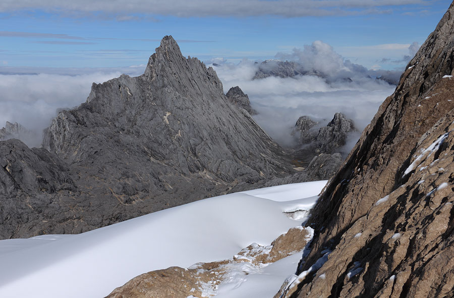 early morning 25.10. solo climb of Carstensz East, view back to yesterday climbed west ridge