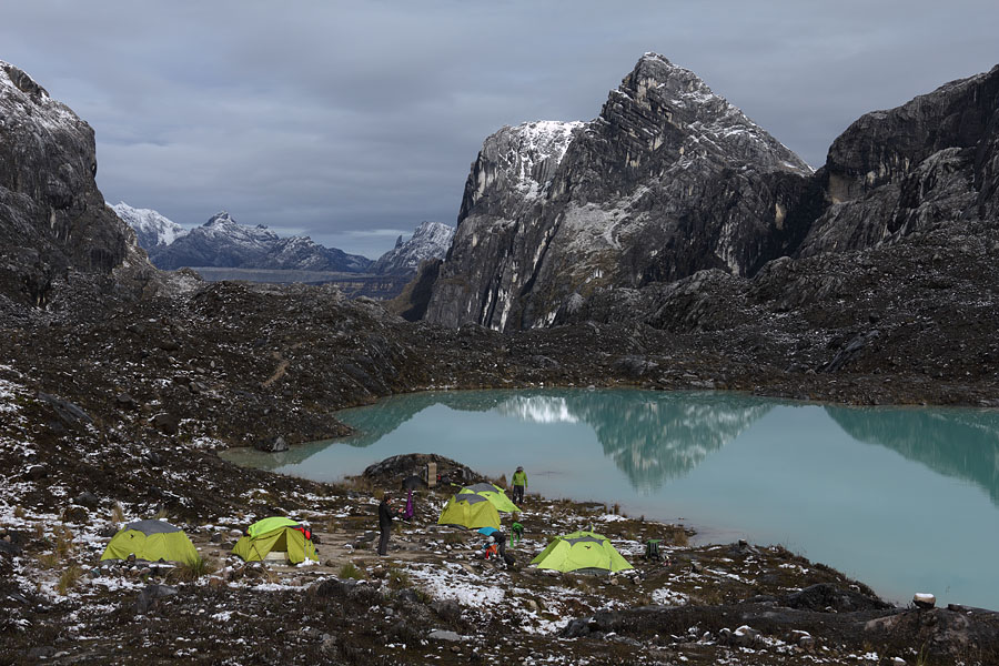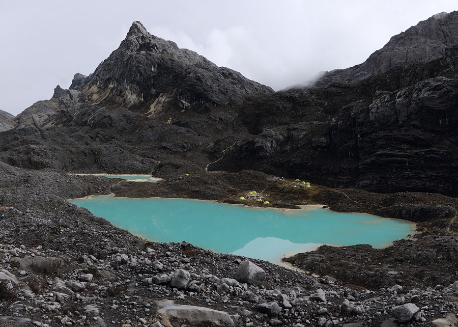 late morning 23.10. solo climb of Ngga Pulu, basecamp left of the farthest lake