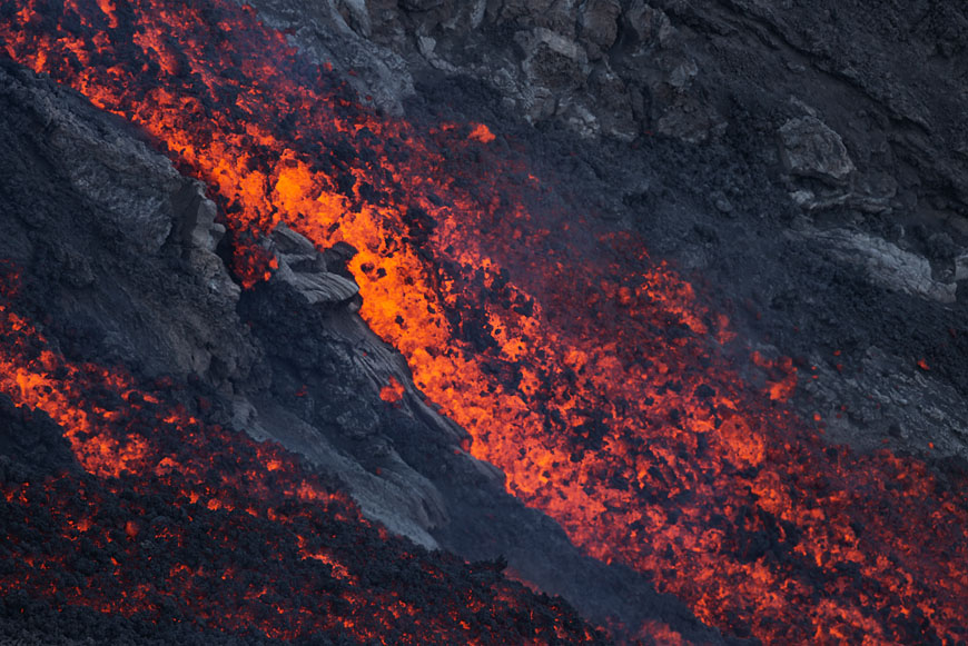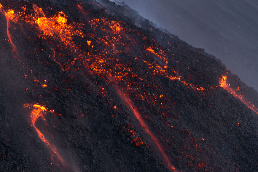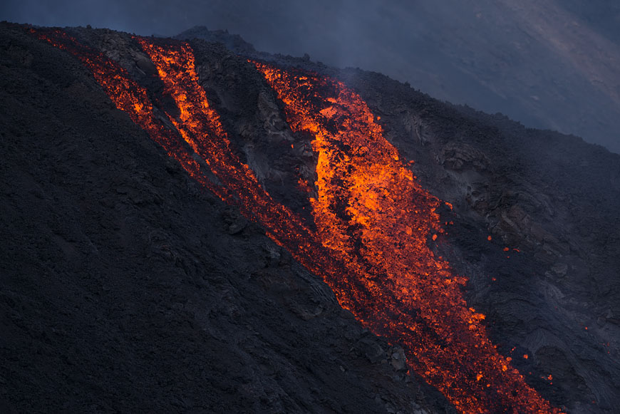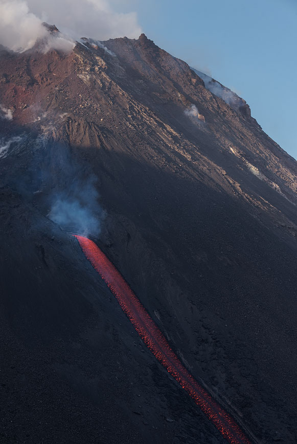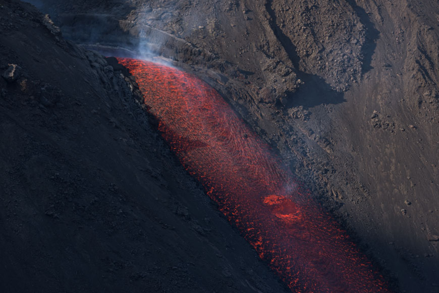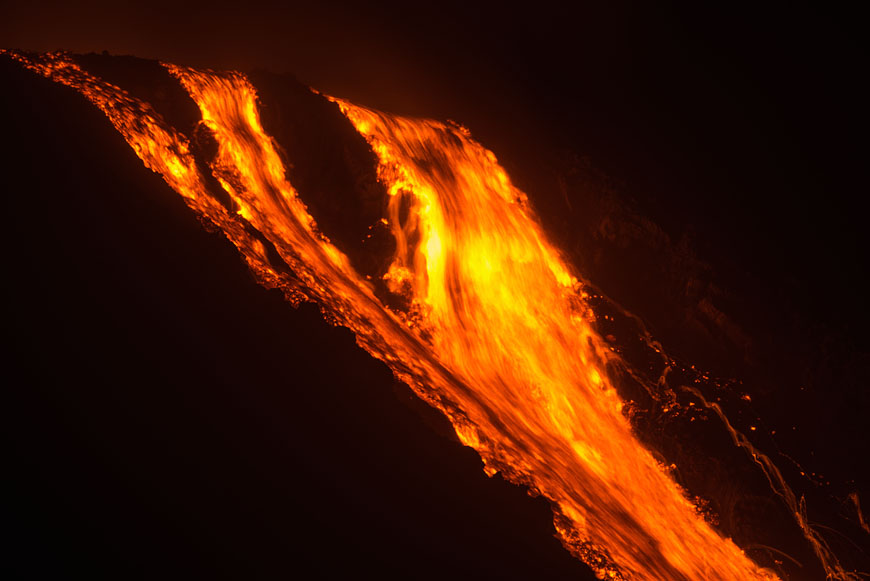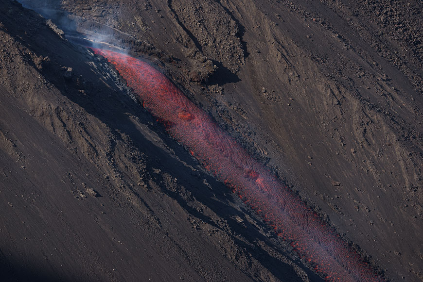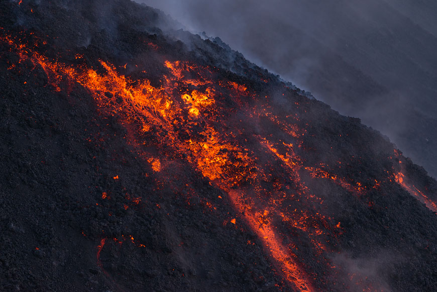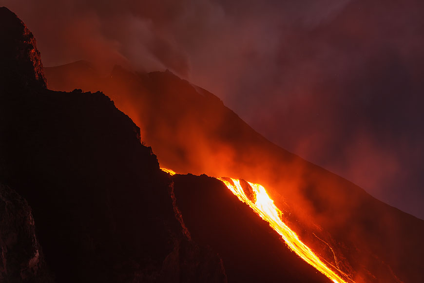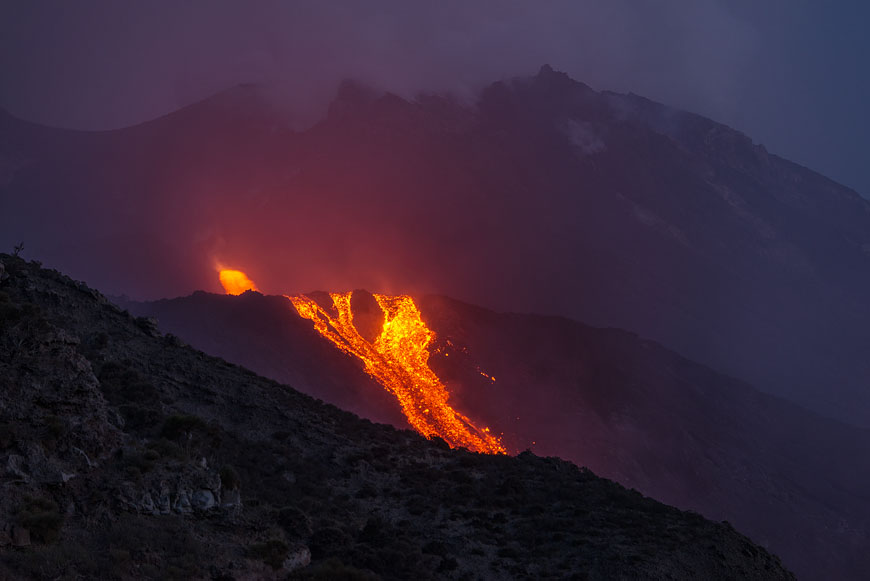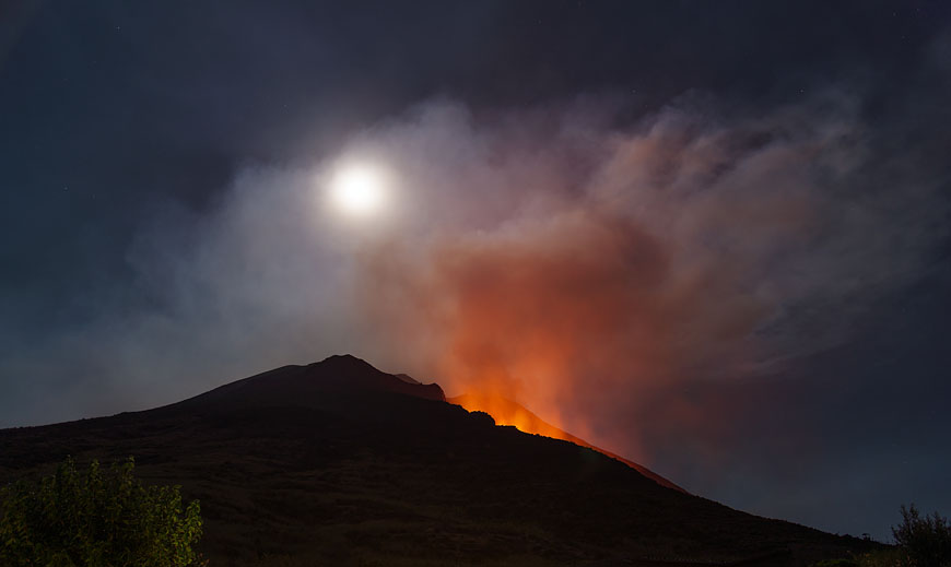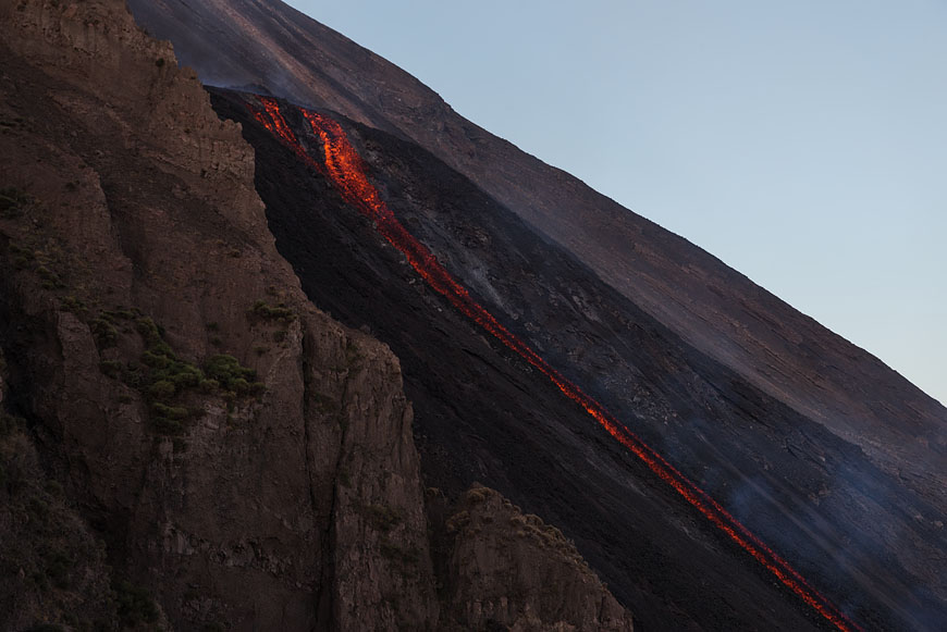 Littoral explosions casting numerous lava fragments which are raining down into the Sea |