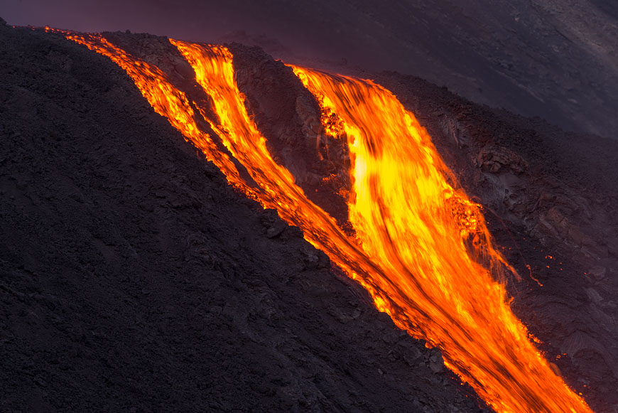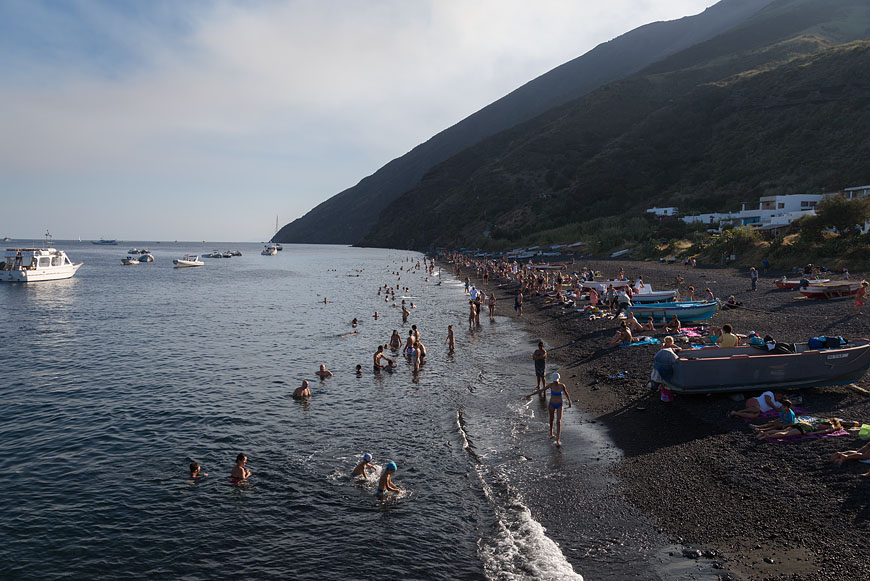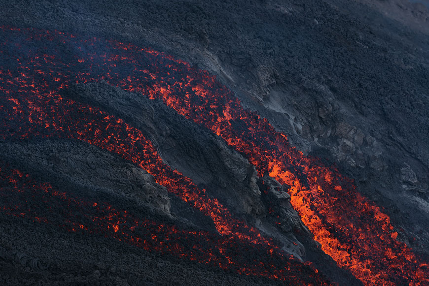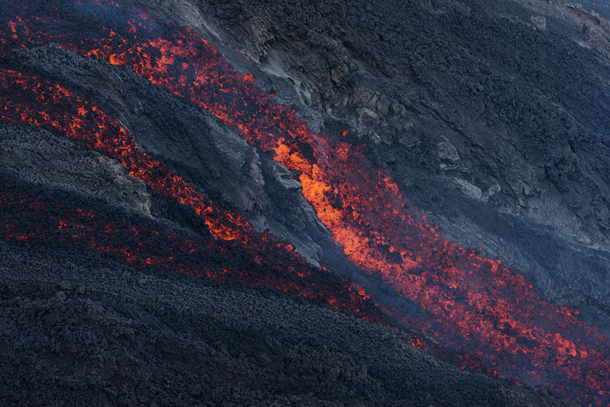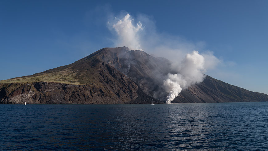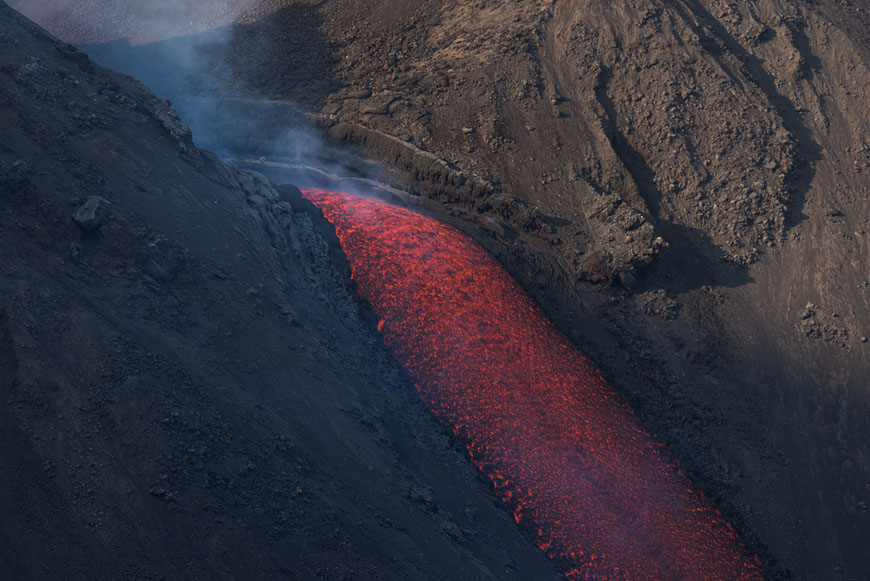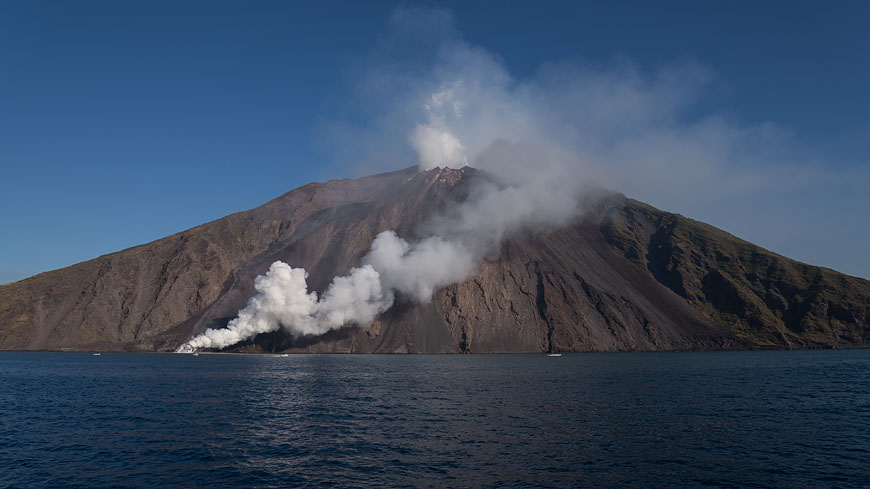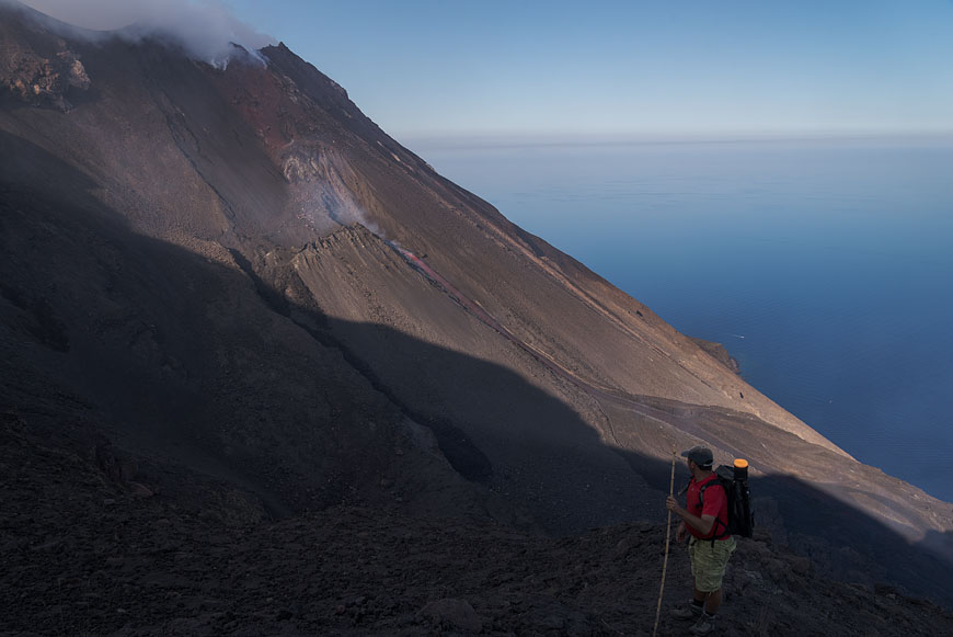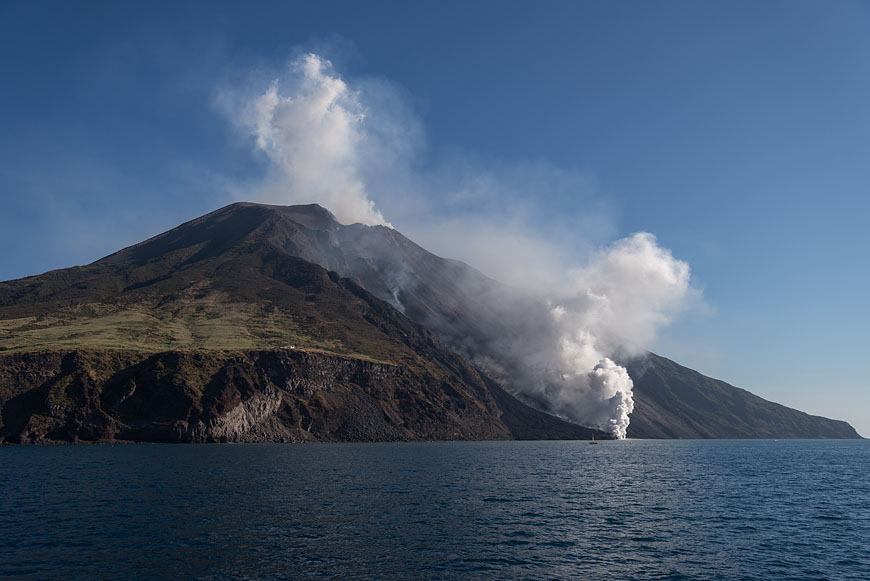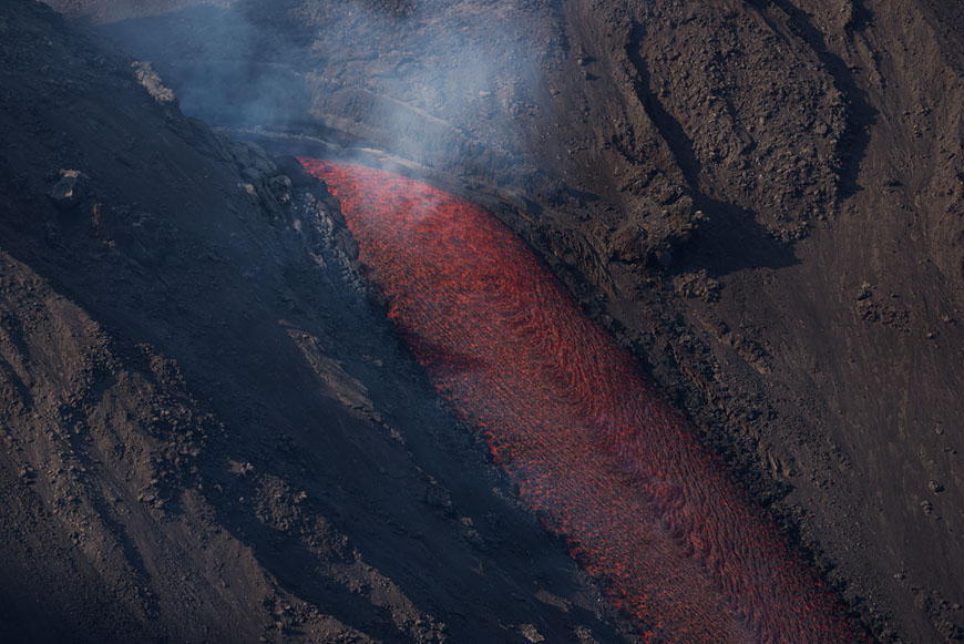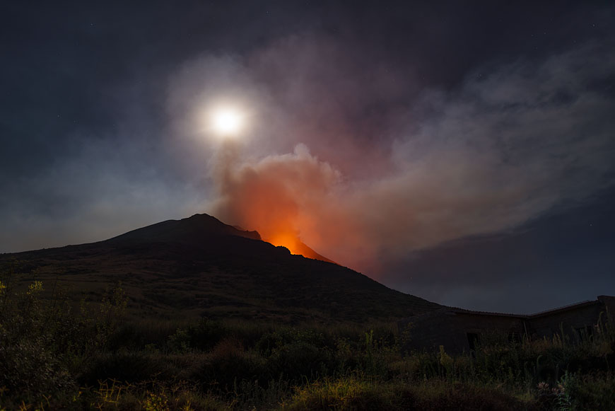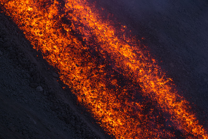 Littoral explosions casting numerous lava fragments which are raining down into the Sea |
