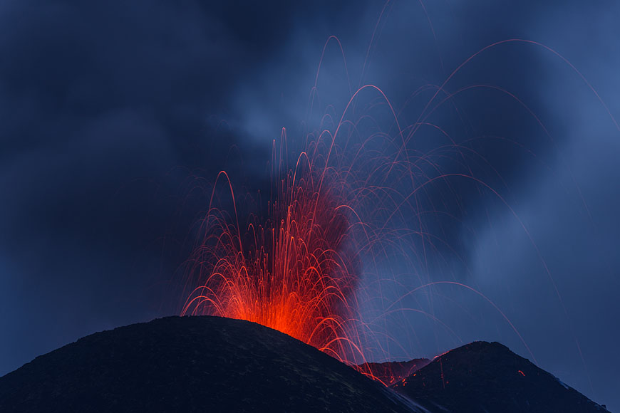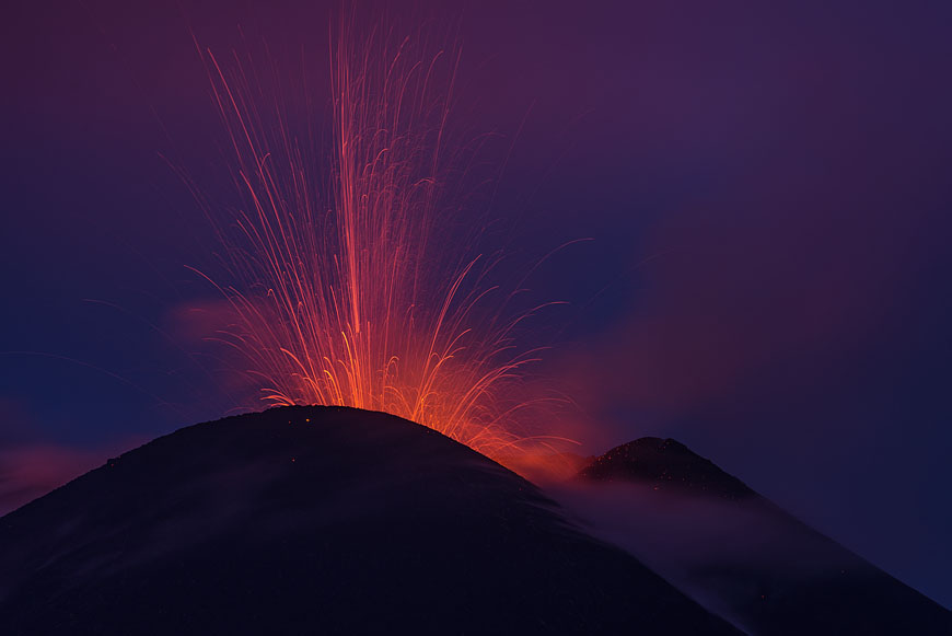 the still not very high lava fountain makes up with its outerworldy color palette |