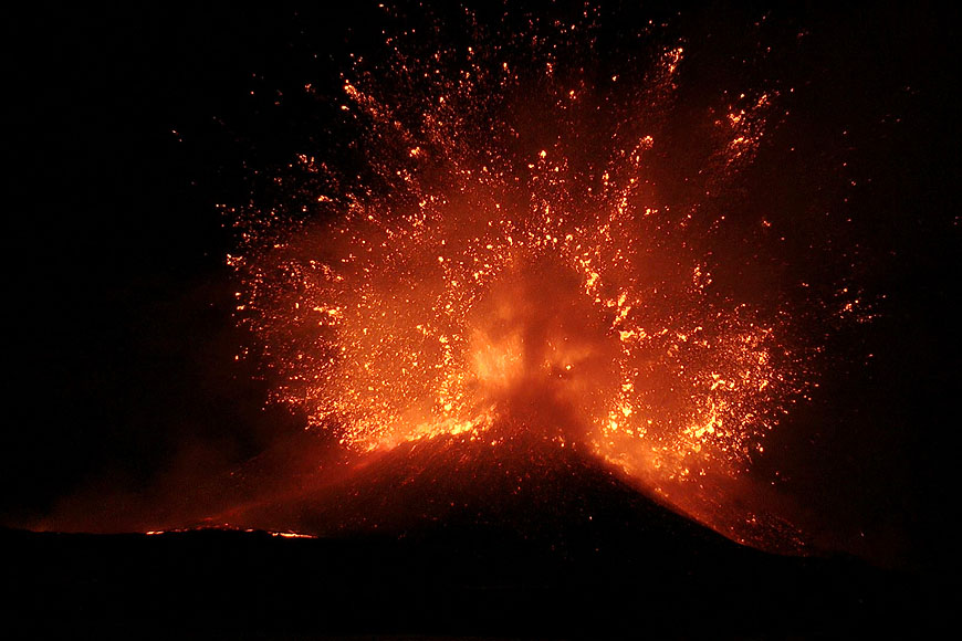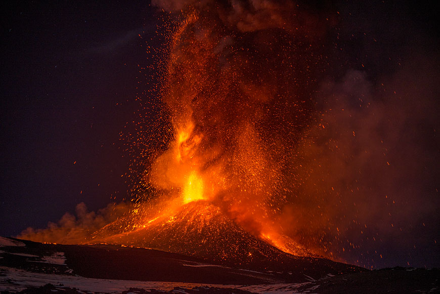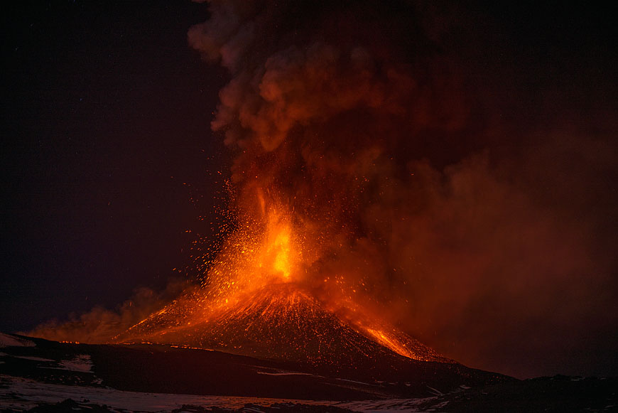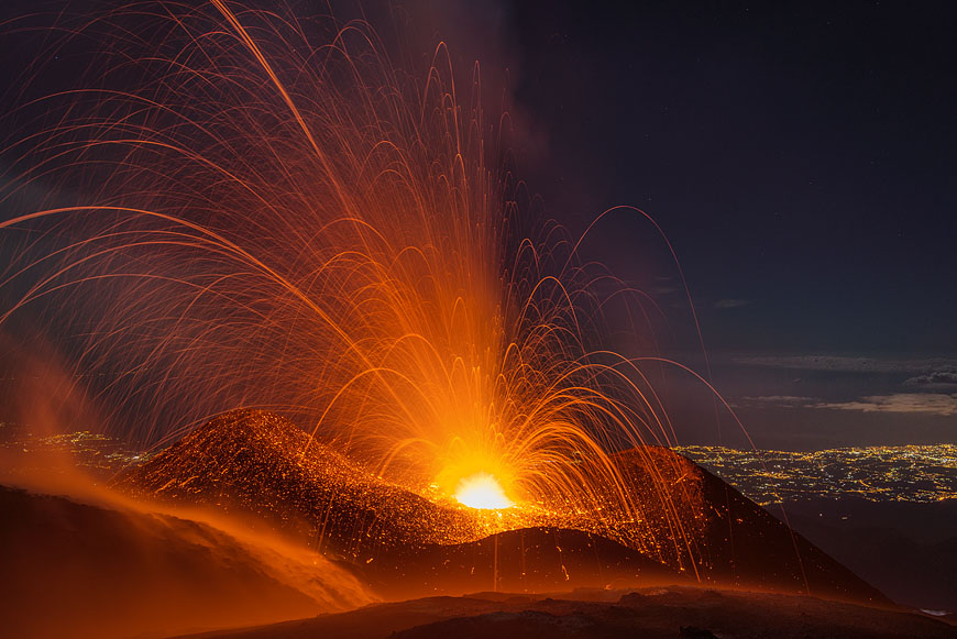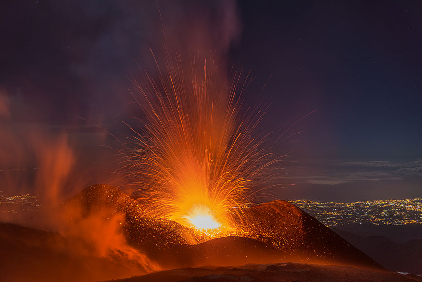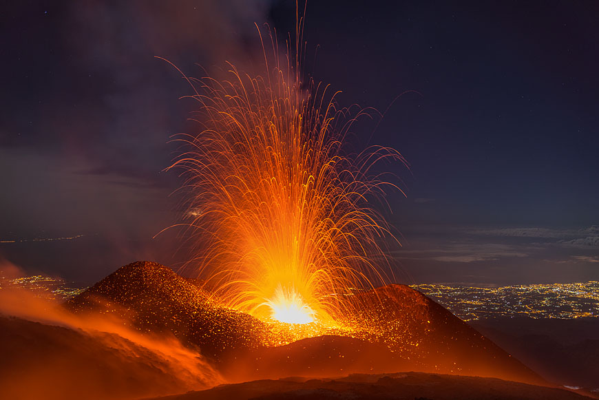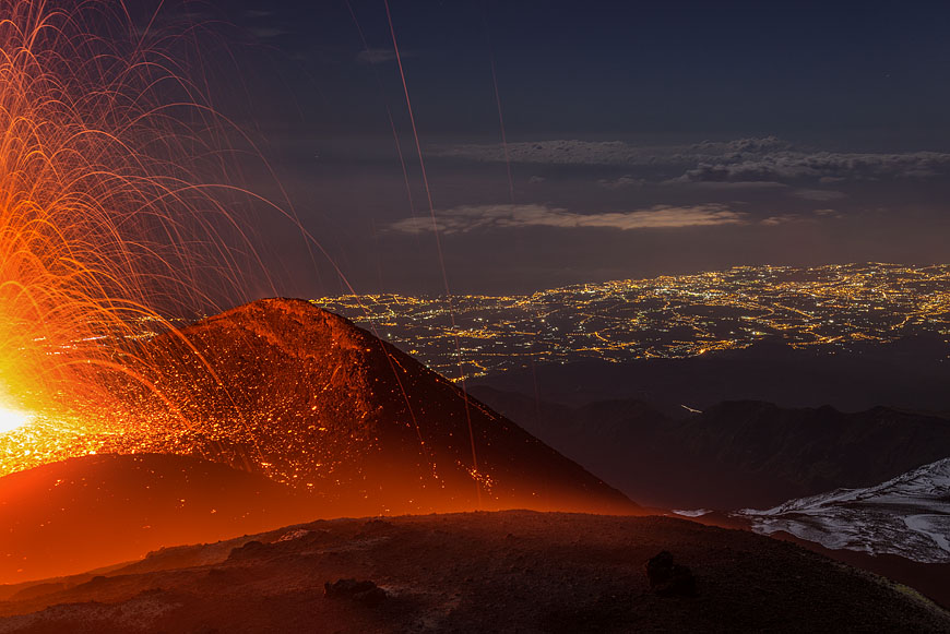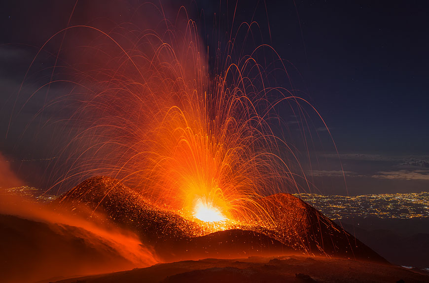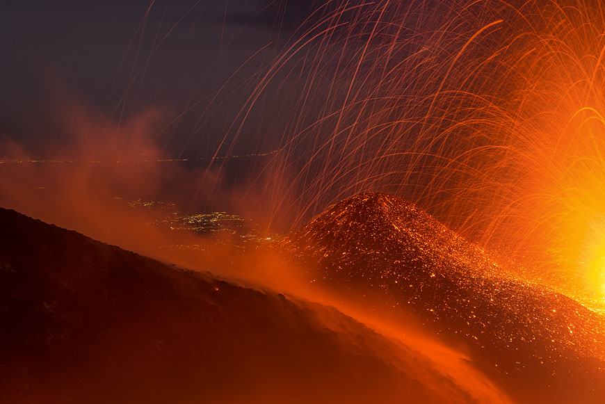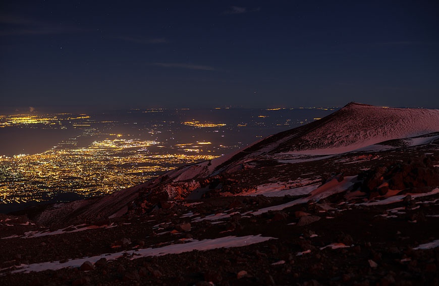 view to Catania-the whole landscape is bathed in intense red color from Paroxysm fountain |
