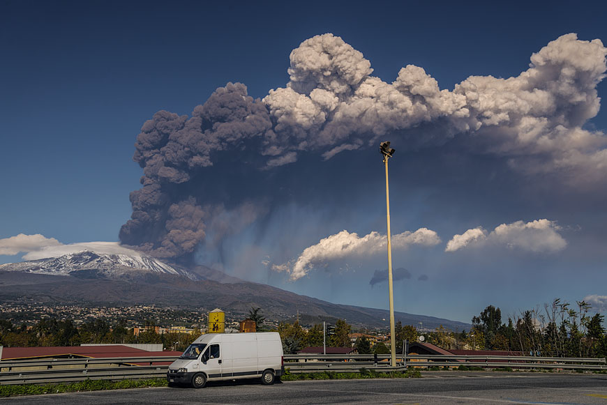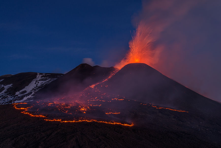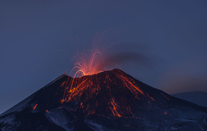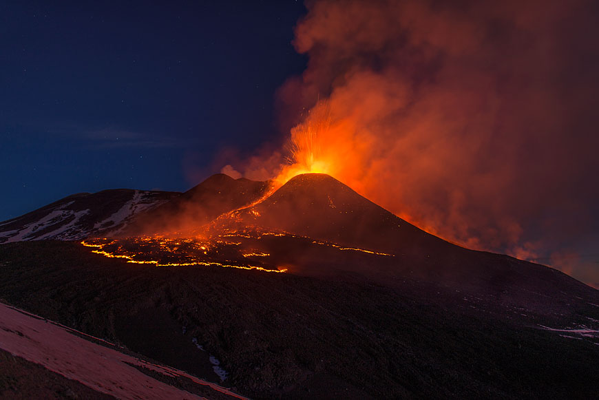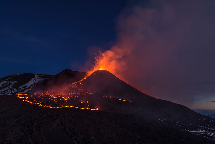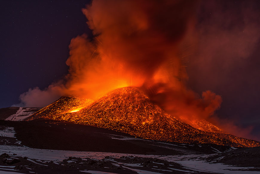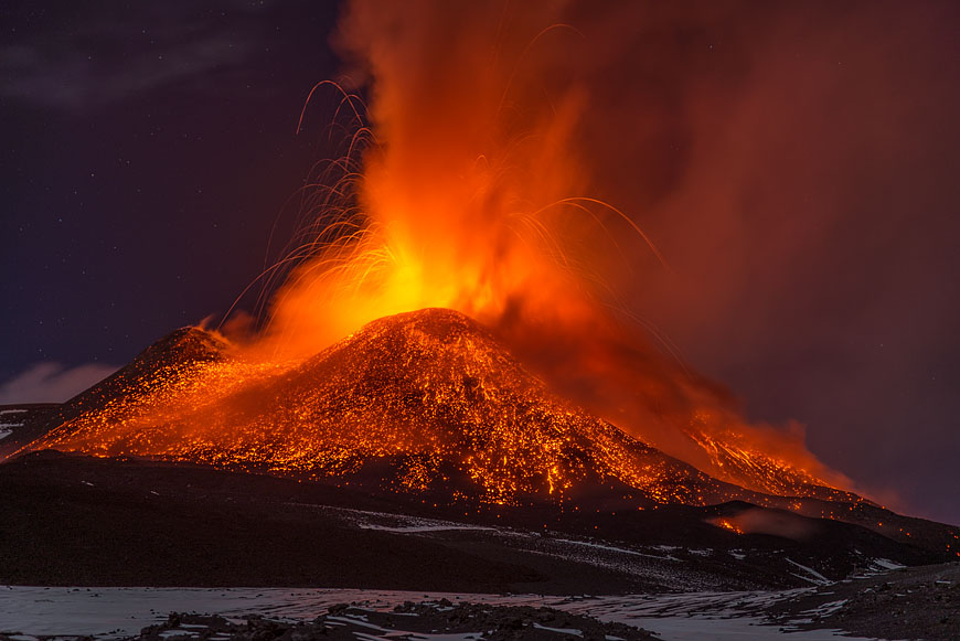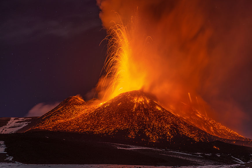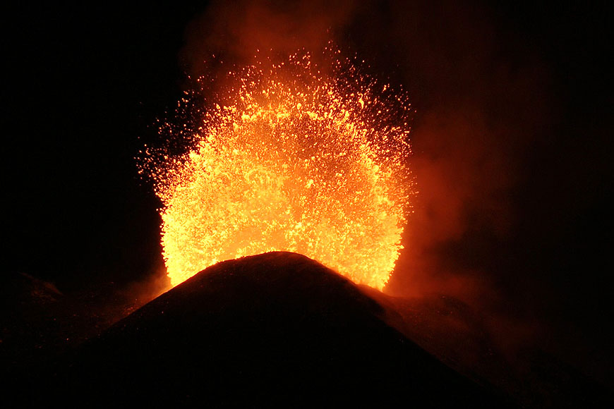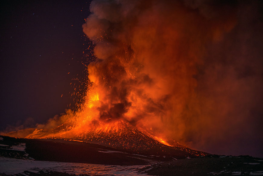 view to Catania-the whole landscape is bathed in intense red color from Paroxysm fountain |