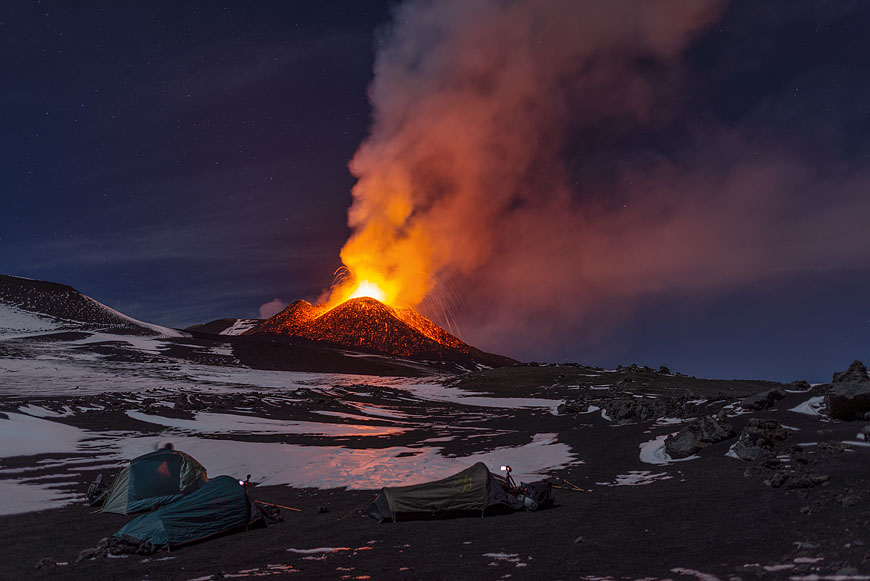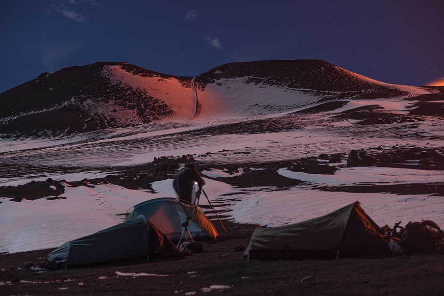 our campsite, even with the hot lava fountains nearby it was a very chilly night |