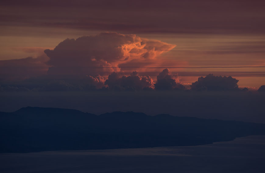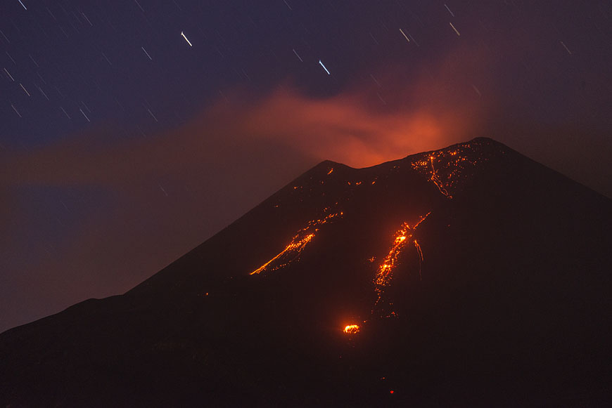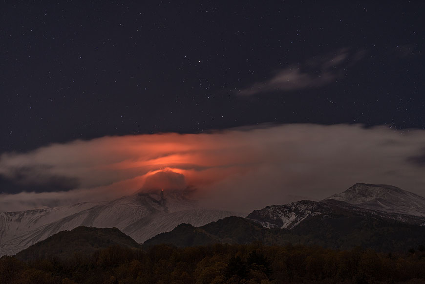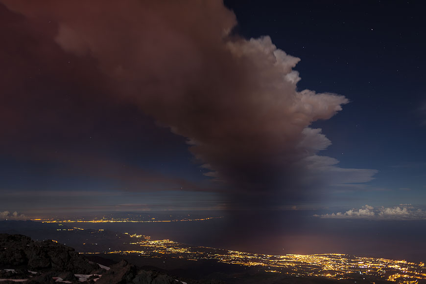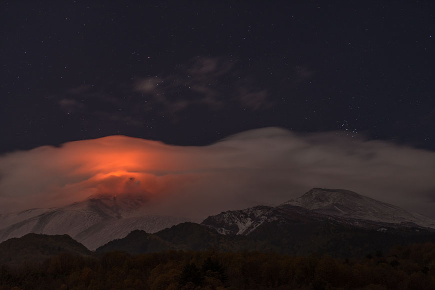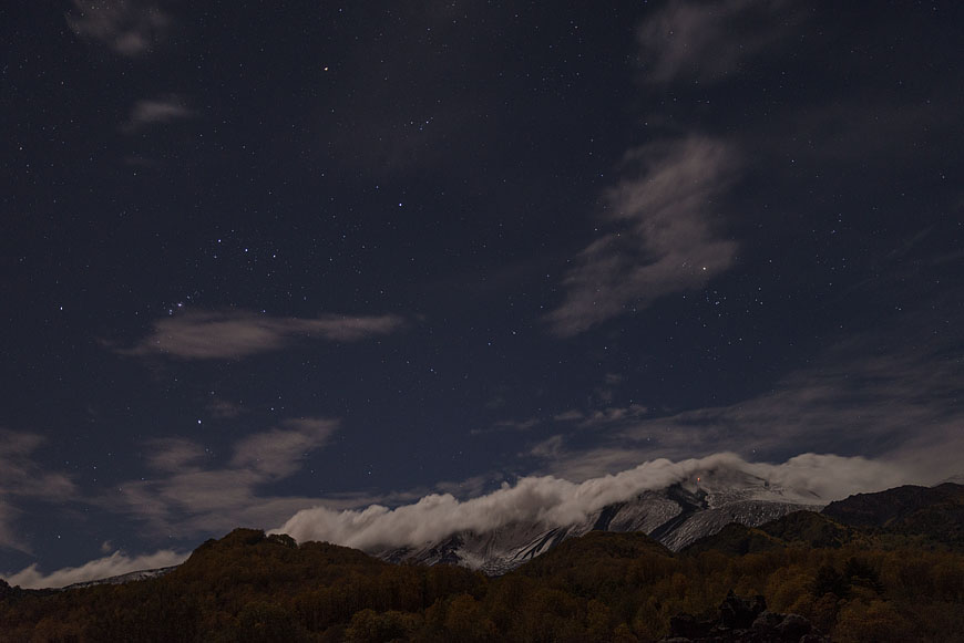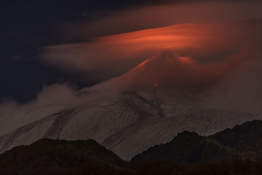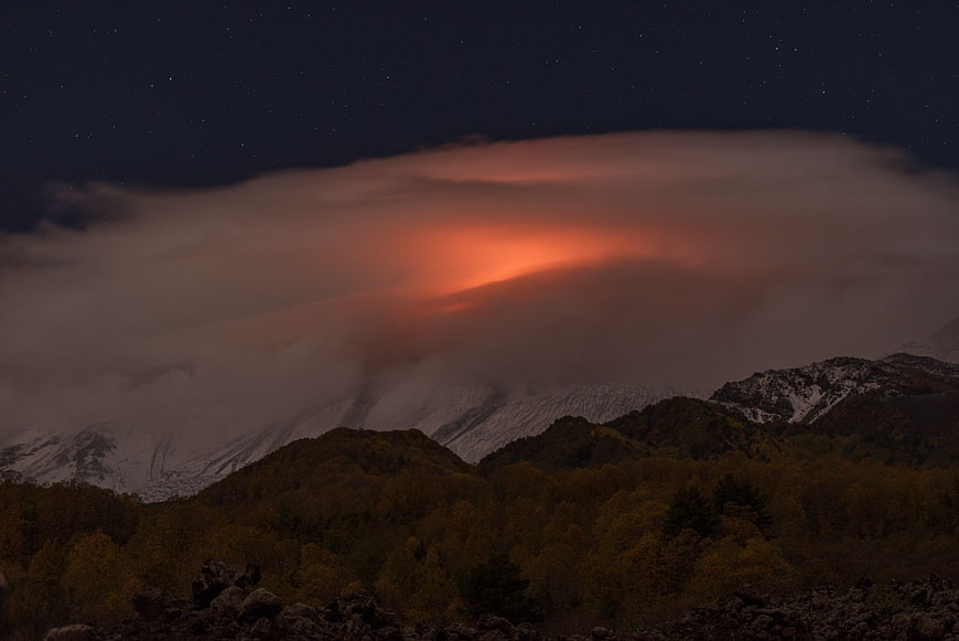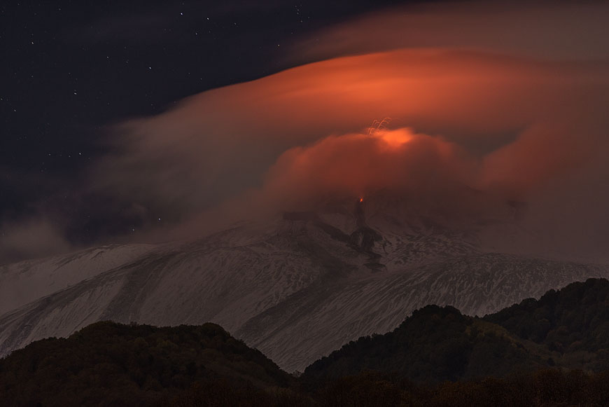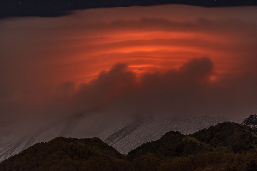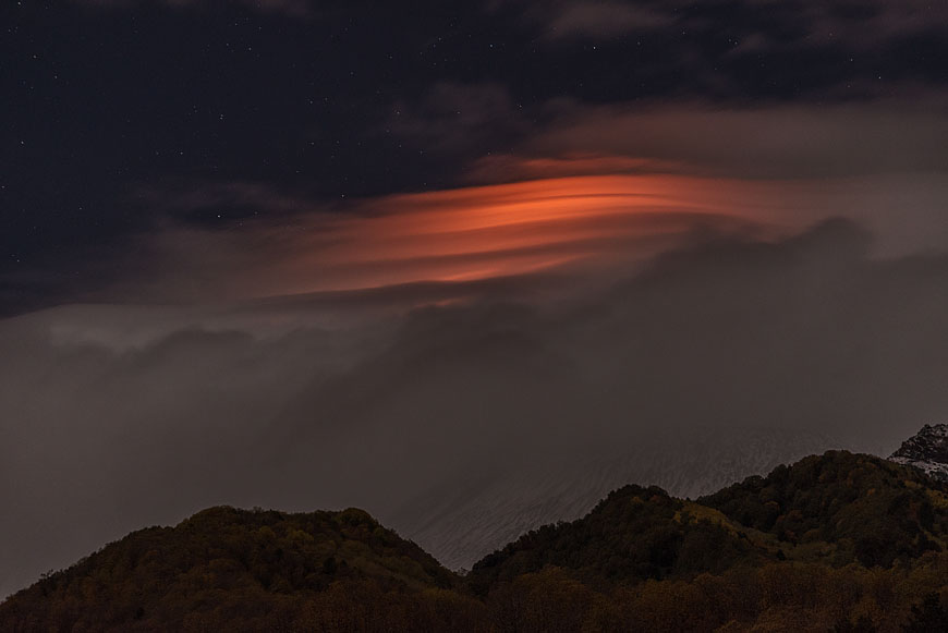 the night brings clouds from W, but sometimes intense strombolian activity illuminates lenticular clouds |