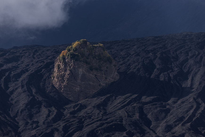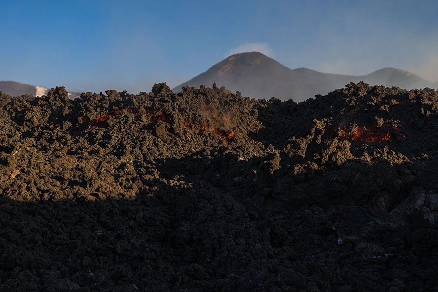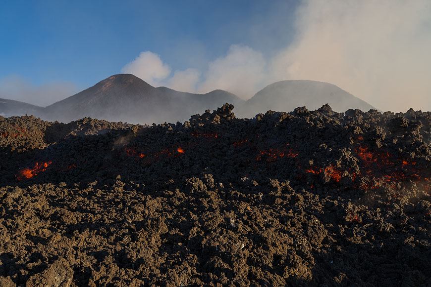 weakly active SE crater with fresh lavaflow seen from top of 2002 cone |