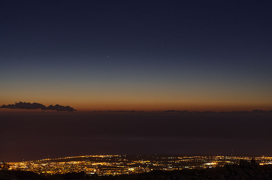 dawn on 23.11. with Comet ISON now right below Mercury, directly above cloud |