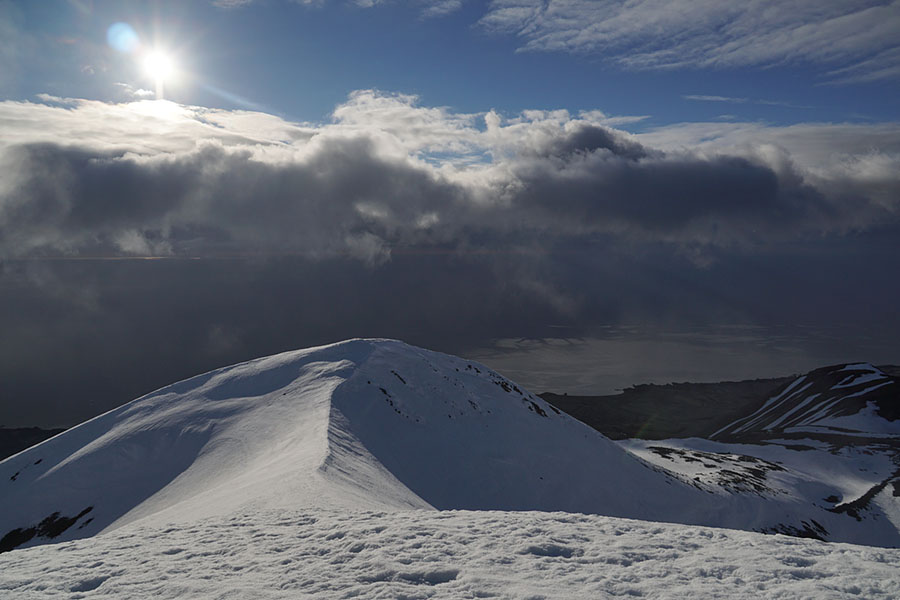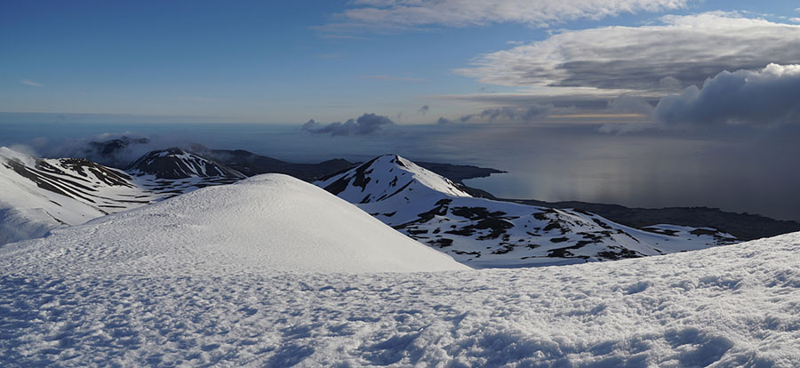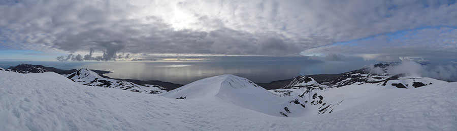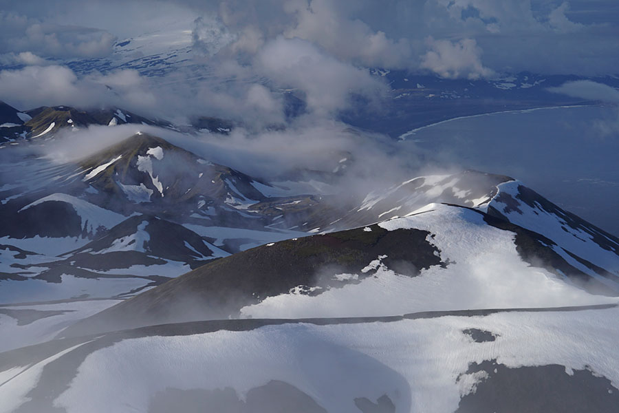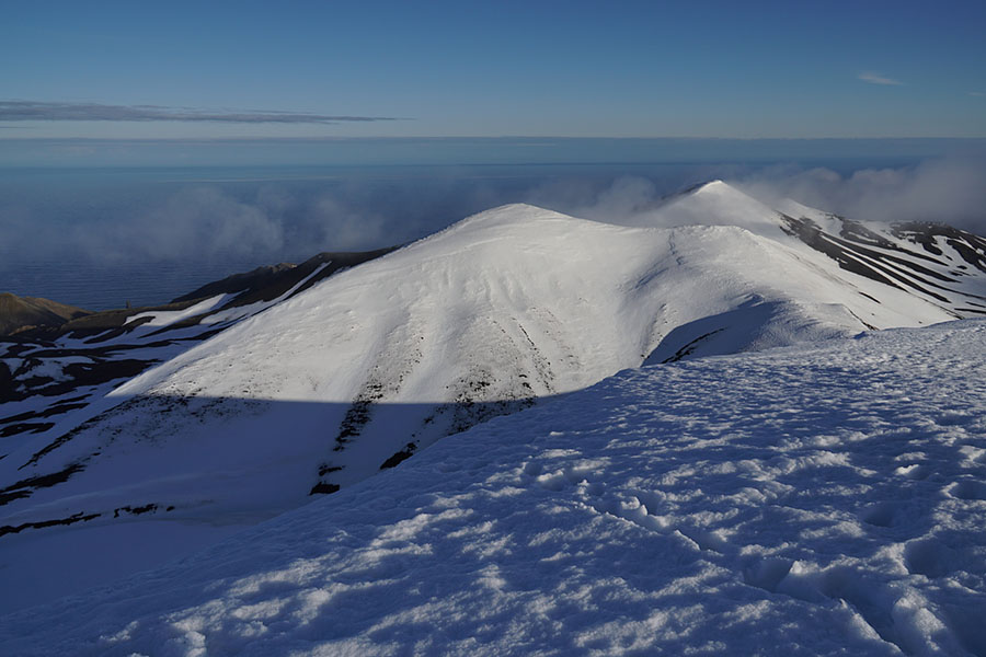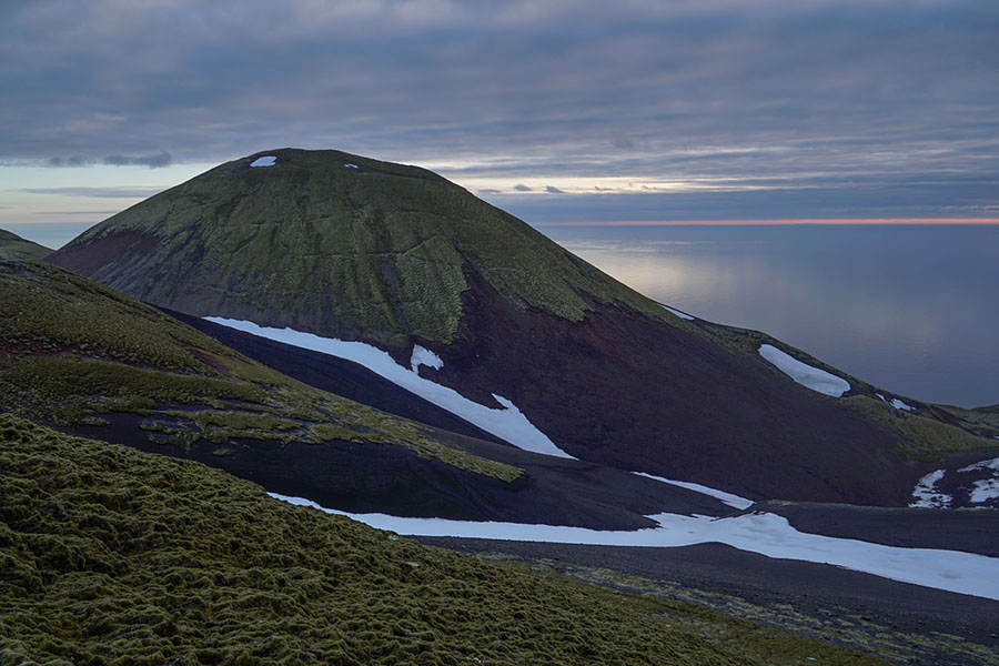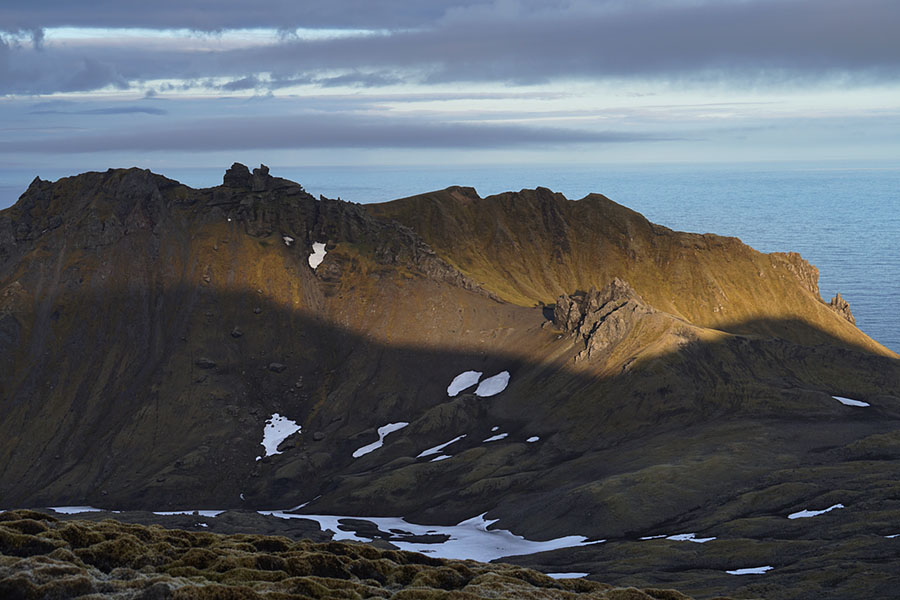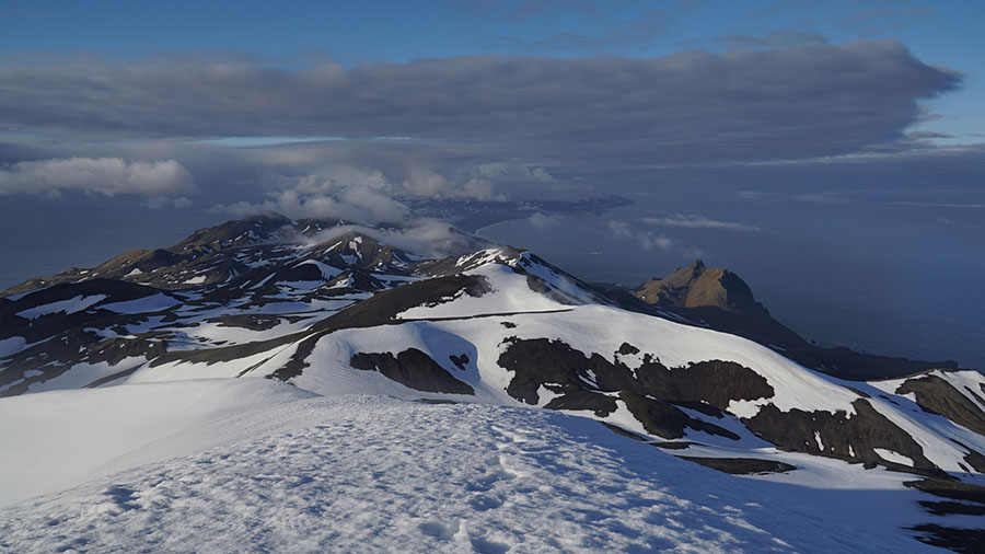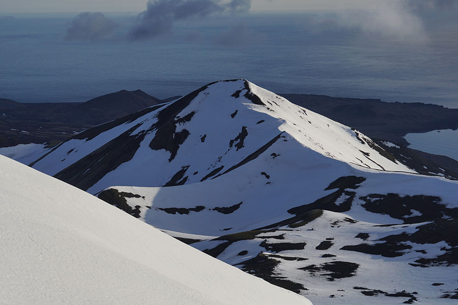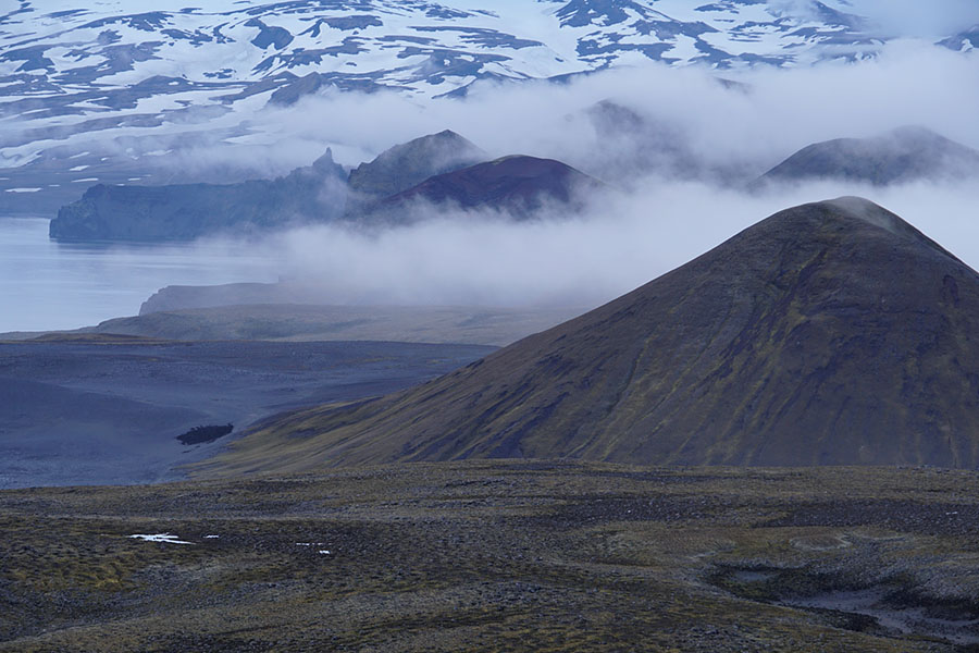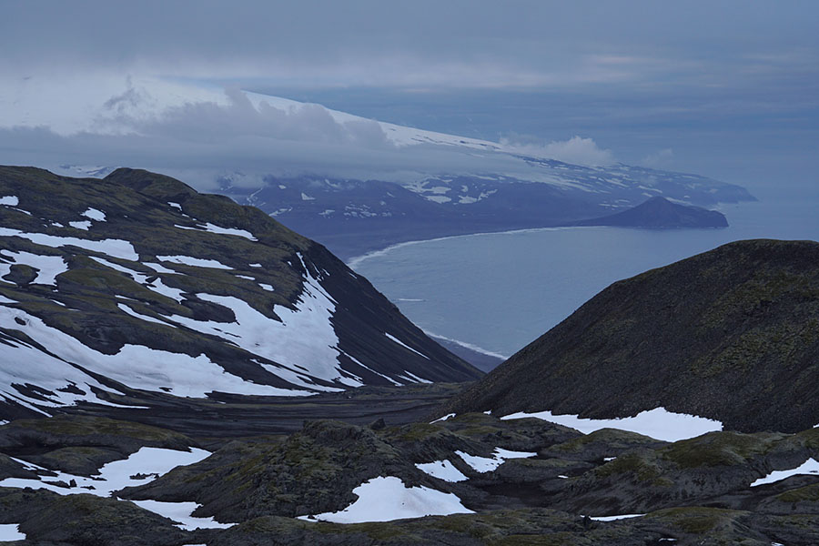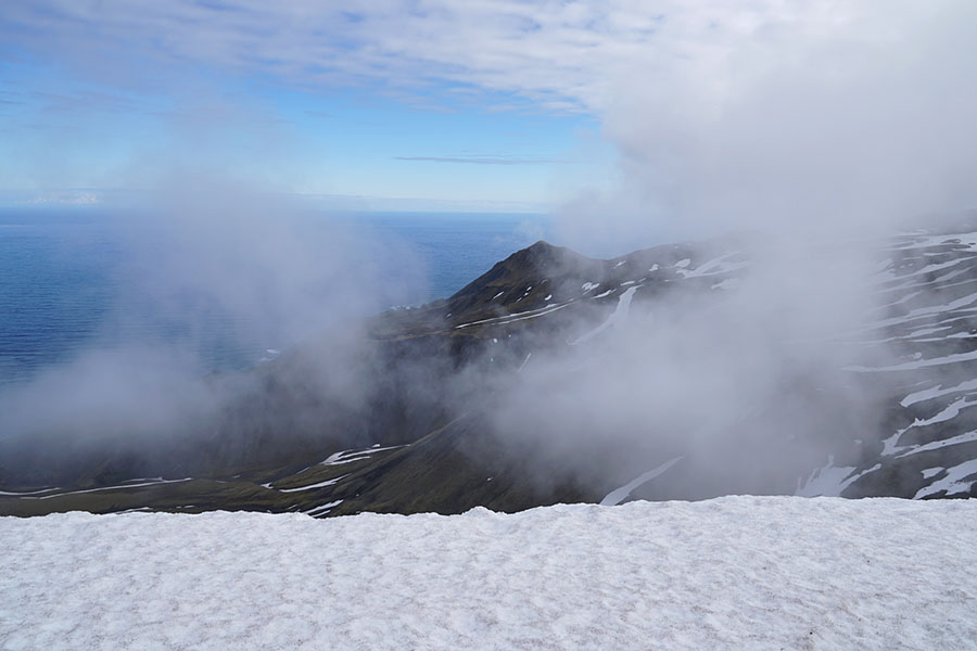 Richterkrater before Sorvestkapp craters of southernmost coast patterned ground, SW coast patterned ground, SW coast SW coast - volcanic rock Olonkin station Olonkin station bluebell moss campion Borgsletta coast, Beerenberg behind Schiertzegga Borgsletta coast, Beerenberg behind SE coast with Schiertzegga Schiertzegga SE coast rock arch retreating surf surf SE coast Schiertzegga - inland side Schiertzegga - inland side frost shaped ground view to Kapp Wien Midtfjellet Borga moss 'island' local lichen mist above Blinddalen meltwater pond W-panorama from Rudolftoppen, highest summit on S island Rudoftoppen N view Rudoftoppen N view Rudoftoppen N view view to Schiertzegga view to Stephanietoppen Franz Josefs Topp Rudolftoppen summit marker Svartfjelltoppane view to Schiertzegga S-panorama from Rudolftoppen 180° panorama to Efrom Rudolftoppe view to Stephanietoppen small lake meltwater lake recently crossed Sternecktoppen view to Schiertzegga Rudolftoppen now far behind ice cave colorful ice cave ice cave lake with Borga behind view to Rekvedbukta zoom in to recently climbed Rudolftoppen Lunckekjegla with frost pattern midnight light ice lake with Beerenberg behind Karl Stephantoppen with S mountains behind Rudolfstoppen in the distance midnight light ice lake Slettfjellet mosses and rivulet Slettfjellet mosses and rivulet Slettfjellet mosses and rivulet Holtanna with Beerenberg behind cloud formations mist over Sorlaguna mist above Maria Muschbukta Pukkelryggen in mist Kvalrossbukta from above, heading for our sail boat view back, Beerenberg dwarfs the S island view back from S southernmost coast