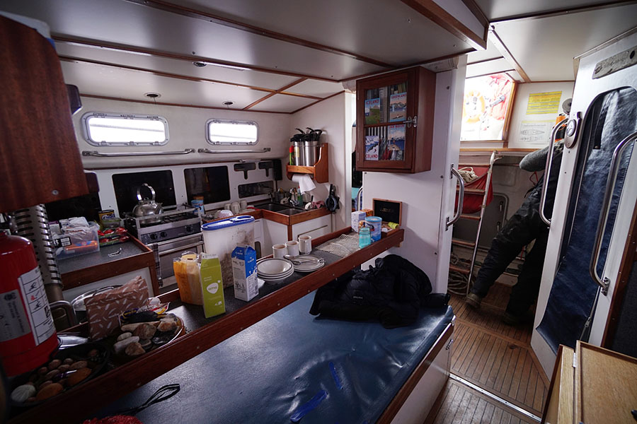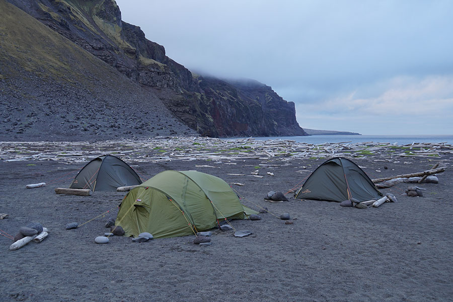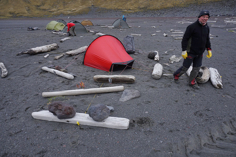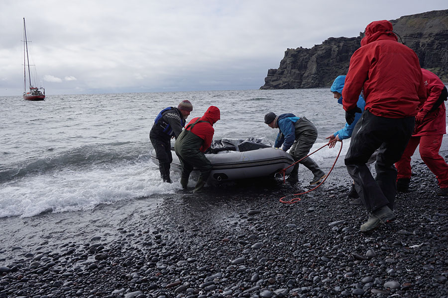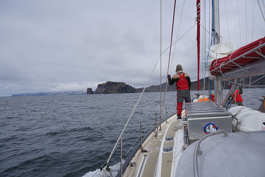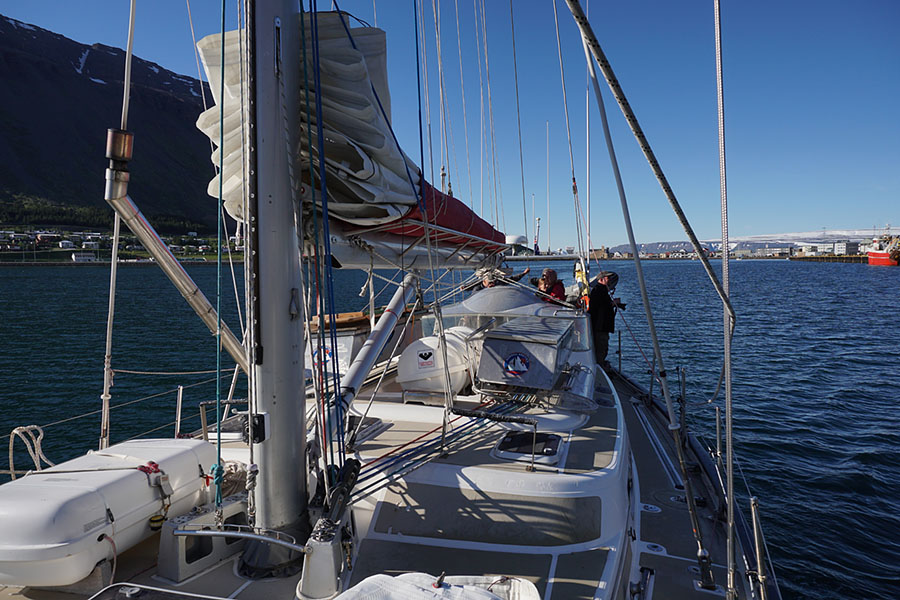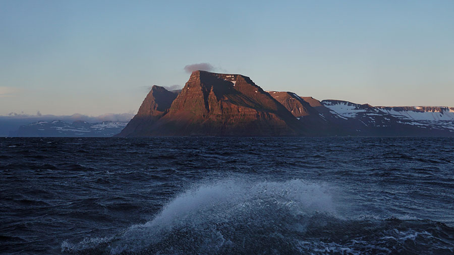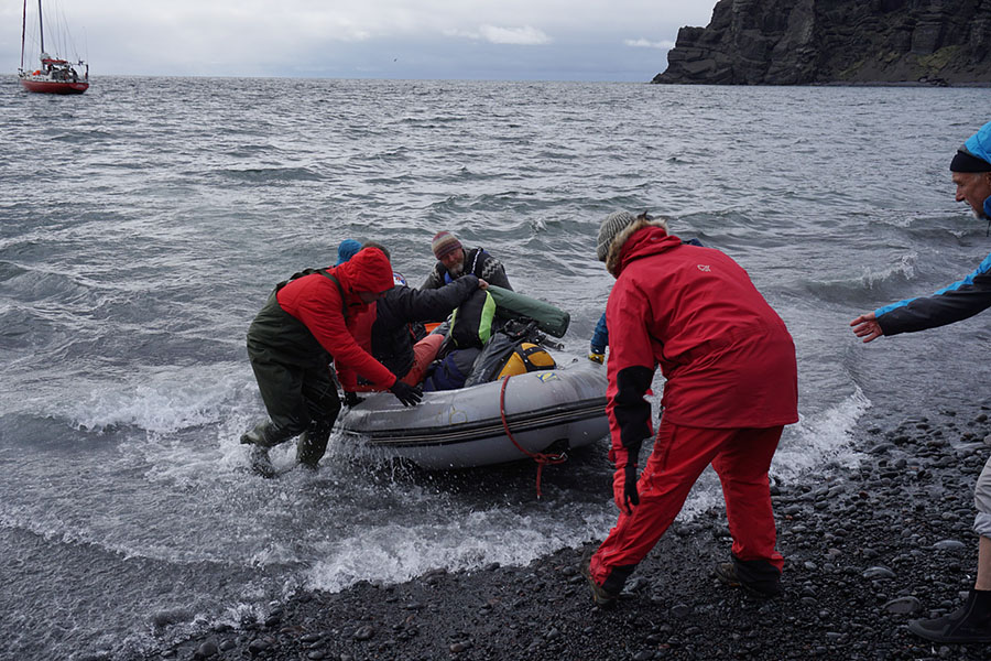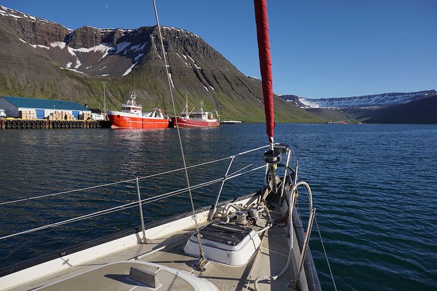 first contact with our sailing boat in Isafjördur harbour boarding the sailing boat last chance for refill leaving Isafjördur S-coast of Hornstrandir S-coast of Hornstrandir S-coast of Hornstrandir leavingS-coast of Hornstrandir icelandic steersman sleeper-cabing cabin on board kitchen navigation-cab heading north passing icebergs passing icebergs heading north permanent tilt on a sailing boat Jan Mayen ahead after 3 days landing on Jan Mayen's W side landing on Jan Mayen our campsite in Kvalrossbukta storm proof tent fixing inside group tent