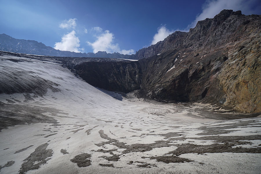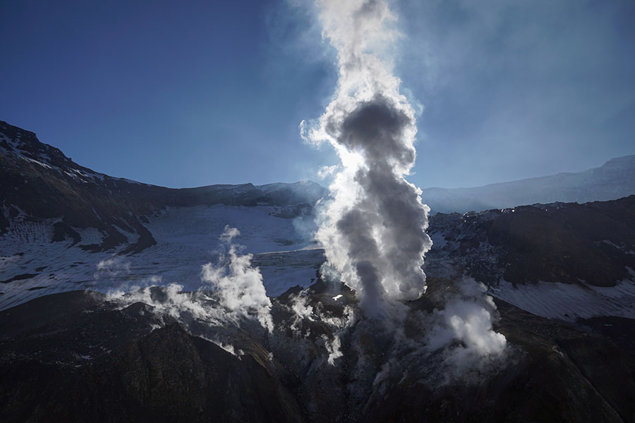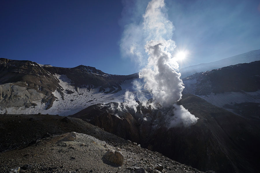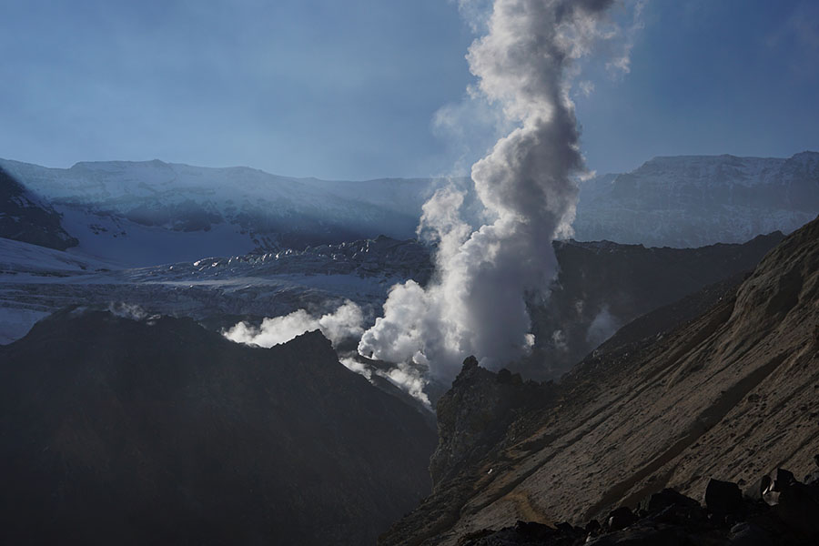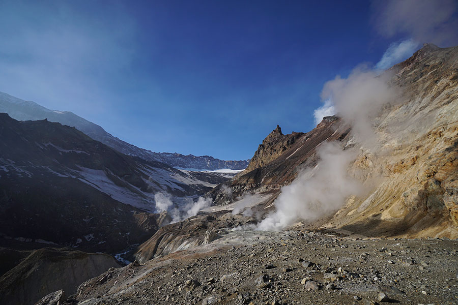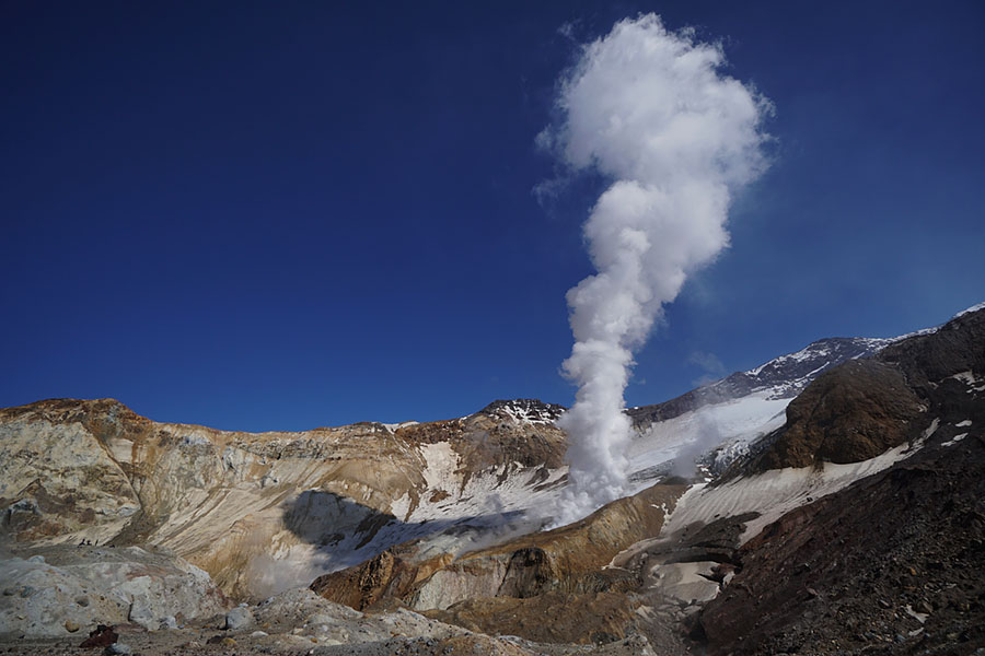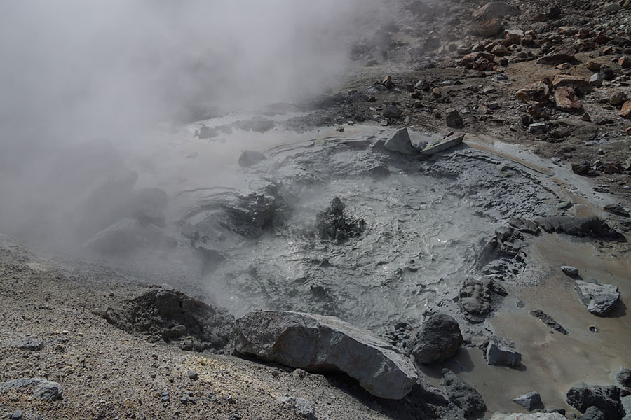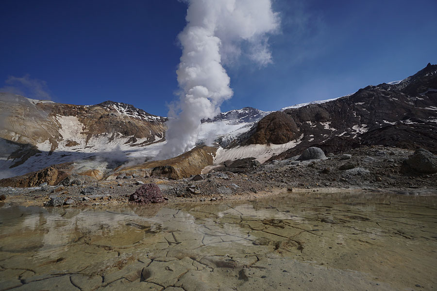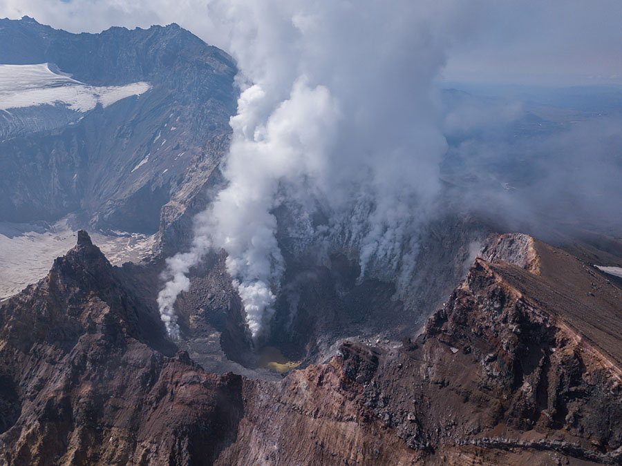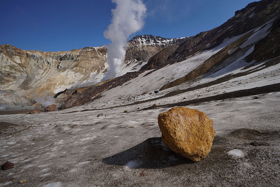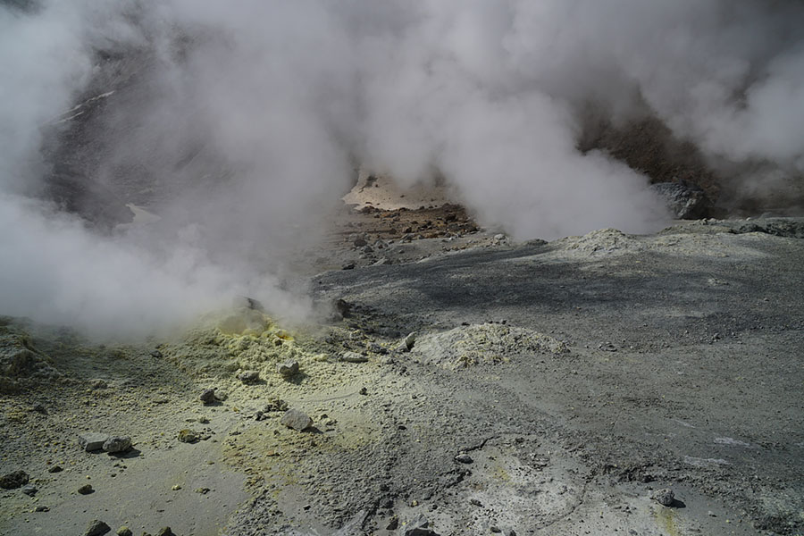 Mutnovsky (2322m) from W, airborne image Mutnovsky from S, airborne image Mutnovsky from above, airborne image active crater, airborne image active crater, airborne image pano entering Mutnovsky from the W side lower end of innercrater glacier melthole inside glacier broken glacier ice fumarole inside crater fumarole inside crater view to S inside crater fumarole inside crater mudpool in front fumarole with sulfur deposits innercrater river crater landscape snow covered crater lake SE crater panorama main fumarole field main fumarole mirroring in pond boiling mudpool boiling mudpool boiling mudpool sulfur deposits fumarole with sulfur deposits fumarole with sulfur deposits meltwater cascade main fumarole field inside crater main fumarole field inside crater main fumarole field inside crater main fumarole field inside crater leaving crater canyon on Mutnovskys W side canyon on Mutnovskys W side canyon on Mutnovskys W side meltwater cascade melting snow deposits