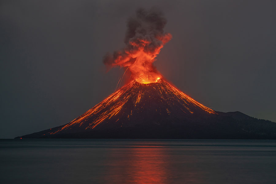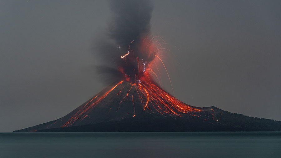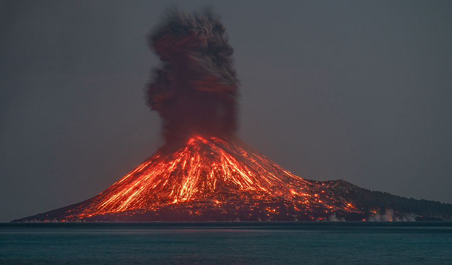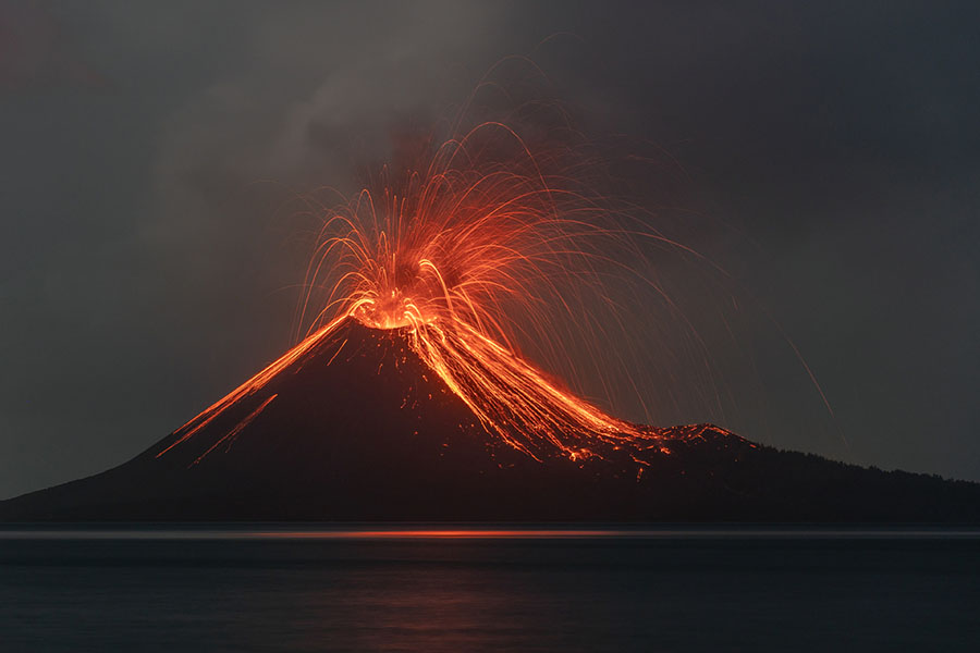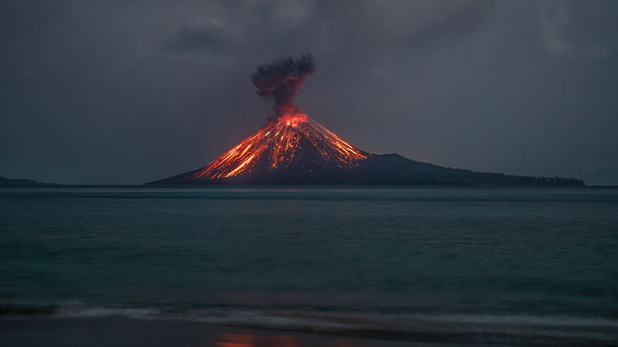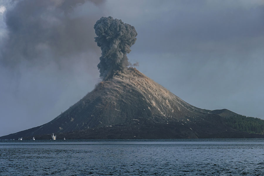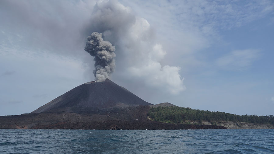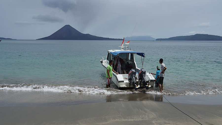 Arrival at Rakata beach with private boat Rakata beach camp Rakata beach camp Rakata beach inhabitants Anak Krakatau from boat Anak Krakatau from boat begin of a stronger eruption night view from Rakata campsite long exposure shows volcanic lightning long exposure shows volcanic lightning typical nighttime activity typical nighttime activity typical nighttime activity lavabombs impacting into the sea Anak Krakatau seen from Drone forested Rakata local fisherboat using Rakata sea as resting place ascending Anak's forest to the impact zone ascending Anak's forest to the impact zone me with fresh lavabombs inside the forest view to the active cone from Anak's forest view to the active cone from Anak's forest view to the active cone from Anak's forest sunset from the boat Anaks activity mirroring into the sea lavabombs impacting into the sea abundant volcanic lightning