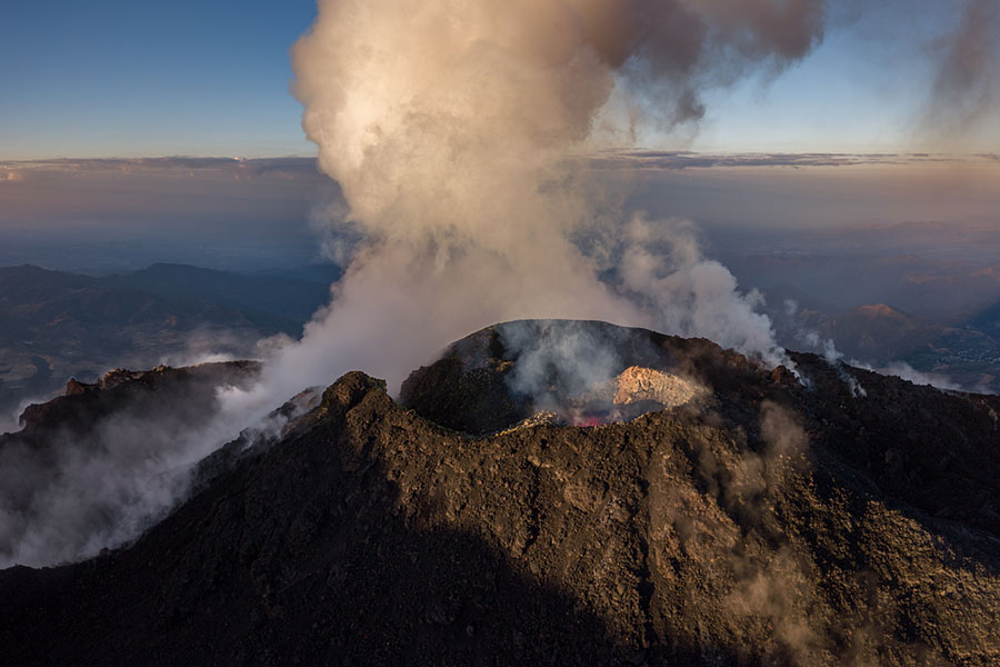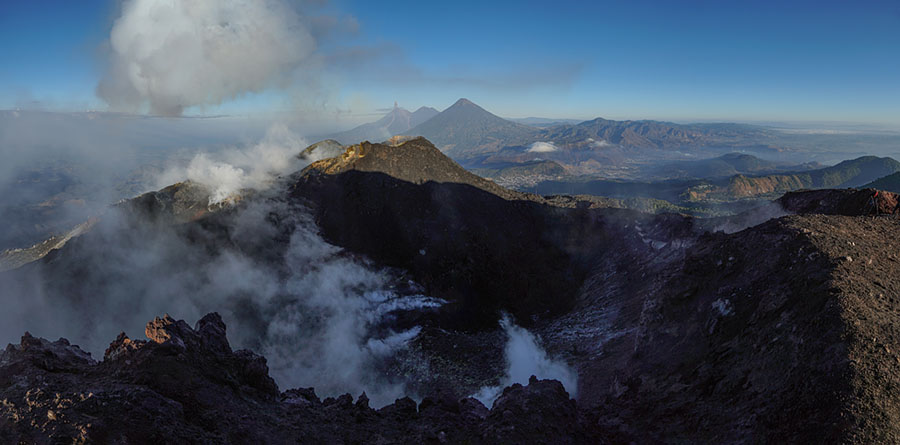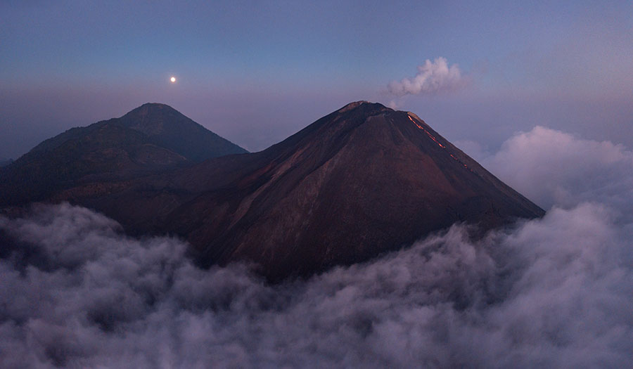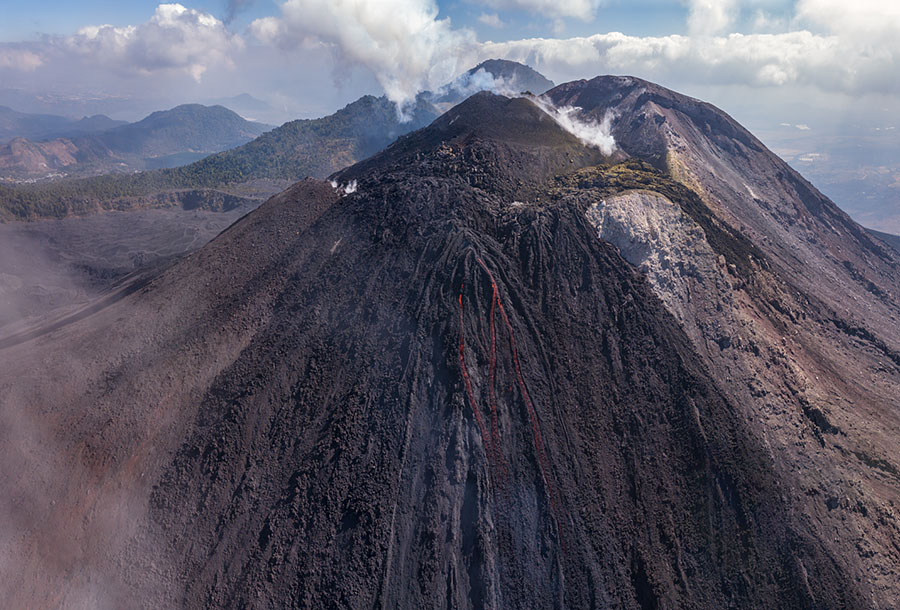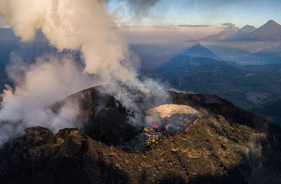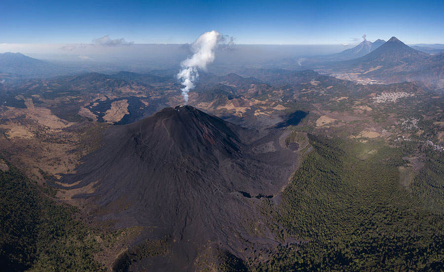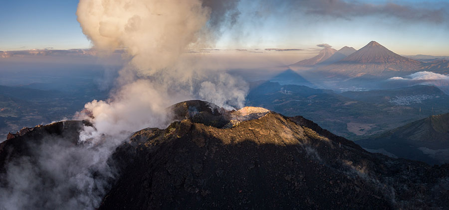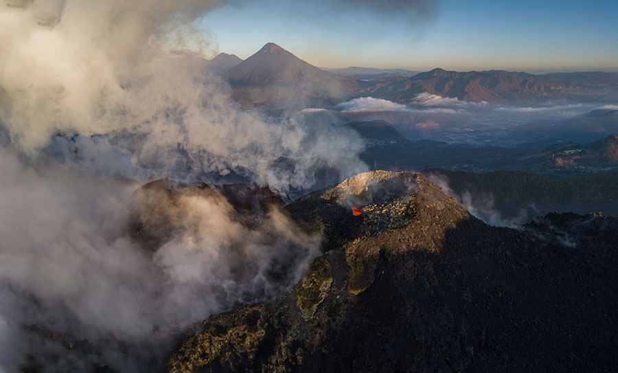 airborne view to Pacaya volcano Pacaya in dusk Pacaya in dusk Strombolian eruption steaming Pacaya under full moon active inner cone active inner cone active inner cone with setting moon behind active inner cone with setting moon behind active inner cone with setting moon behind active inner cone in dawn, Agua and Fuego behind active inner cone in daylight steaming cone in daylight sulfur deposits around cone sulfur deposits around cone lava spattering phase summit cone seen by drone summit cone seen by drone summit cone seen by drone summit cone seen by drone drone view onto the lavaflow drone view onto the lavaflow lavaflow in dusk lavaflow in dusk lavaflow in dusk airborne panorama in dusk airborne view in dusk far distance view from Fuego to Pacaya in dawn