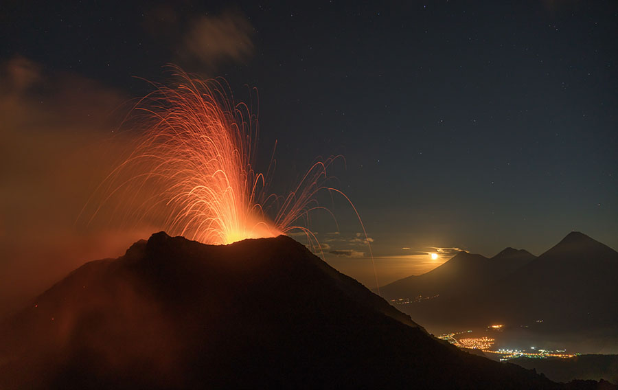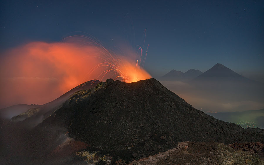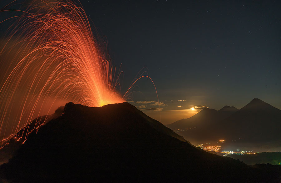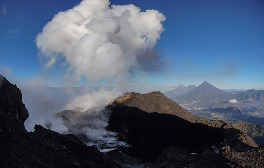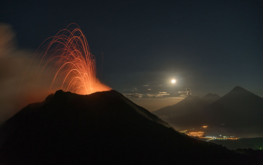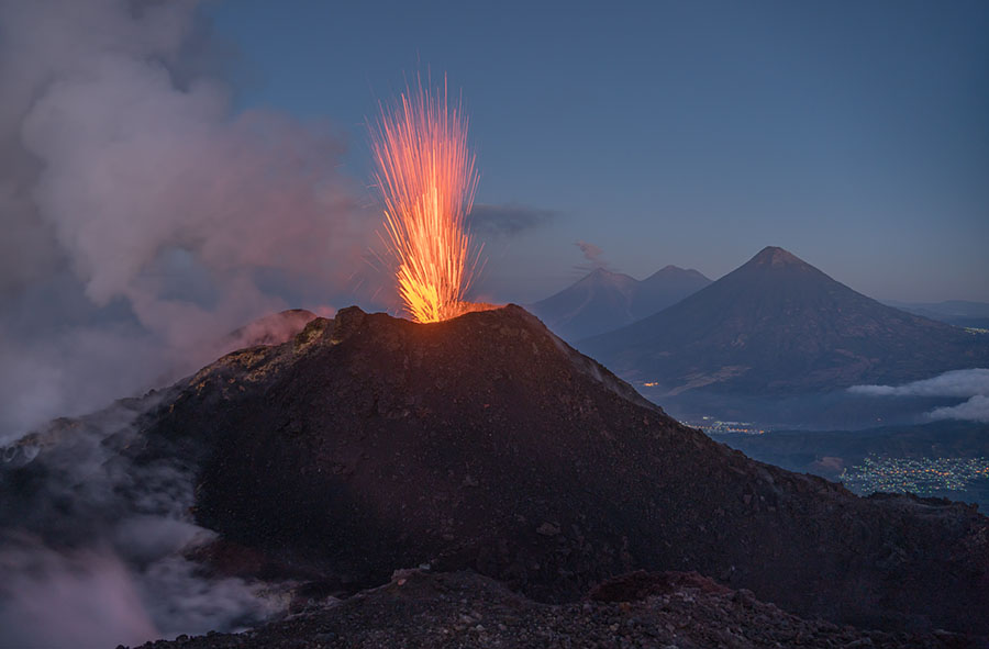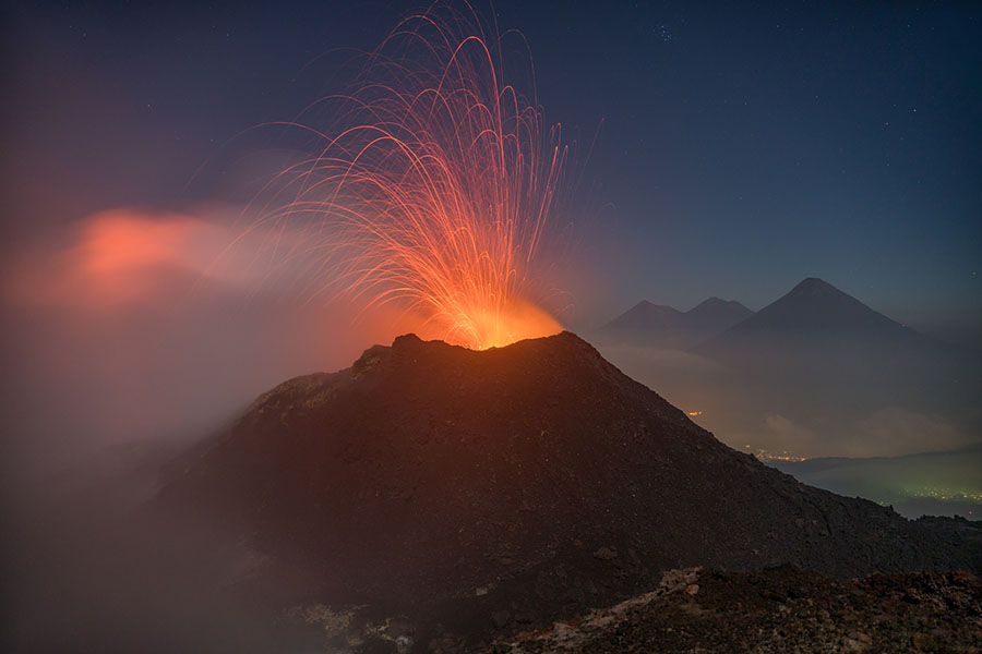 airborne view to Pacaya volcano Pacaya in dusk Pacaya in dusk Strombolian eruption steaming Pacaya under full moon active inner cone active inner cone active inner cone with setting moon behind active inner cone with setting moon behind active inner cone with setting moon behind active inner cone in dawn, Agua and Fuego behind active inner cone in daylight steaming cone in daylight sulfur deposits around cone sulfur deposits around cone lava spattering phase summit cone seen by drone summit cone seen by drone summit cone seen by drone summit cone seen by drone drone view onto the lavaflow drone view onto the lavaflow lavaflow in dusk lavaflow in dusk lavaflow in dusk airborne panorama in dusk airborne view in dusk far distance view from Fuego to Pacaya in dawn